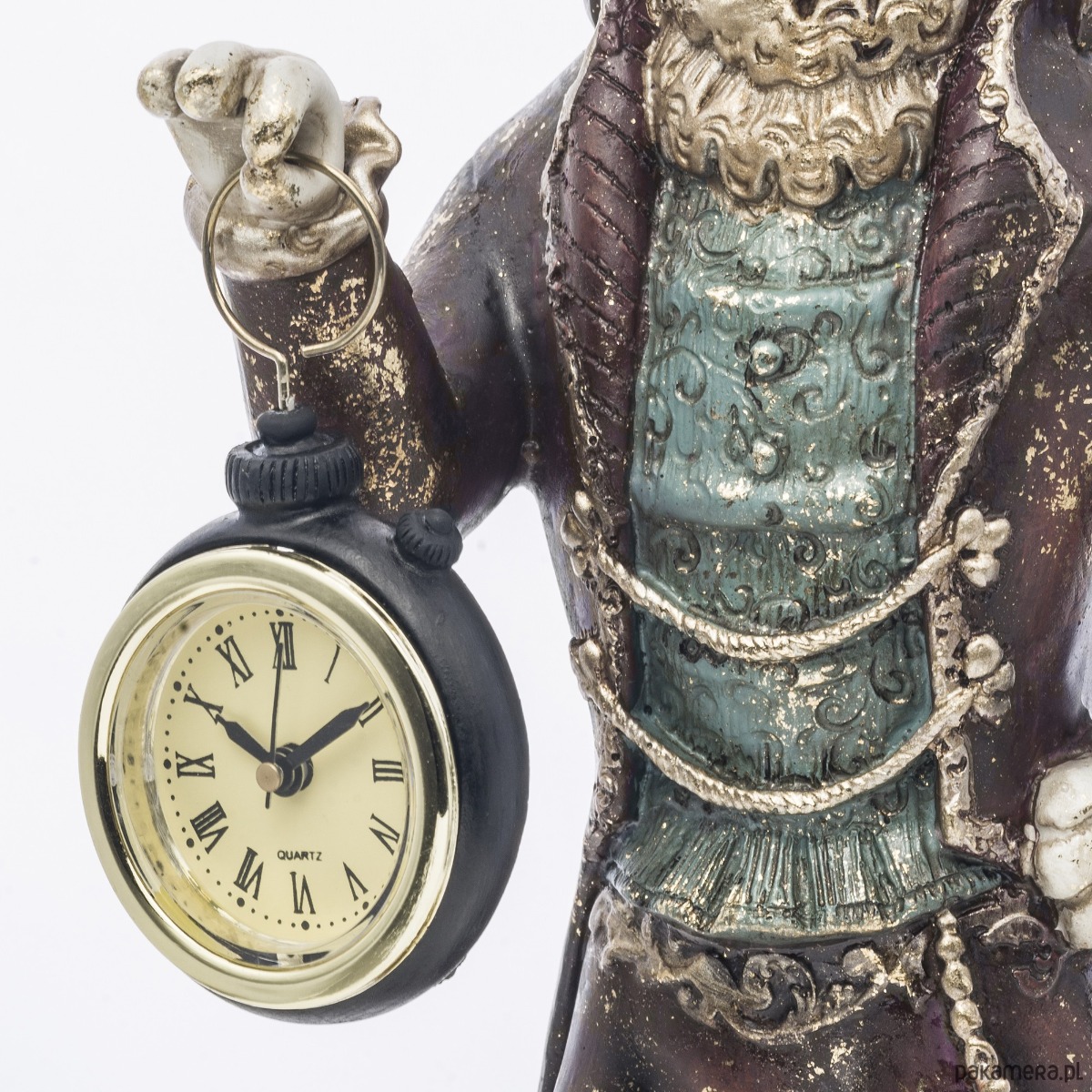 Figurka królika wykonana została z kolorowego tworzywa sztucznego. Postać zwierzęcia przedstawia osobnika w błyszczącym ubraniu modnym dawno temu. Duży zegarek na łańcuszku jest uzupełnieniem dekoracji i będzie ciekawym dodatkiem świątecznego wystroju mieszkania.