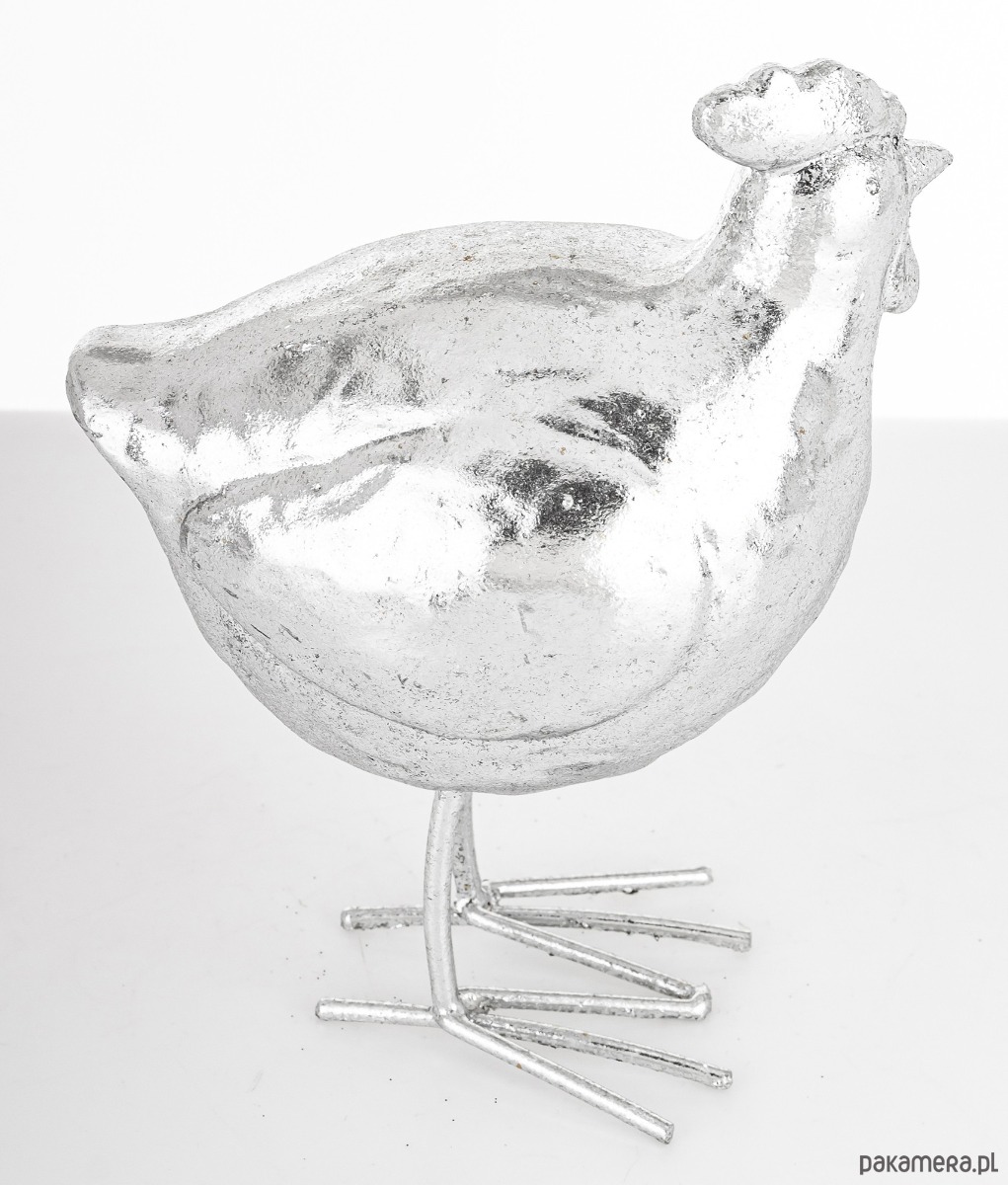 Dekoracja - kura 16x11,5x8 cm srebrna POLLAME