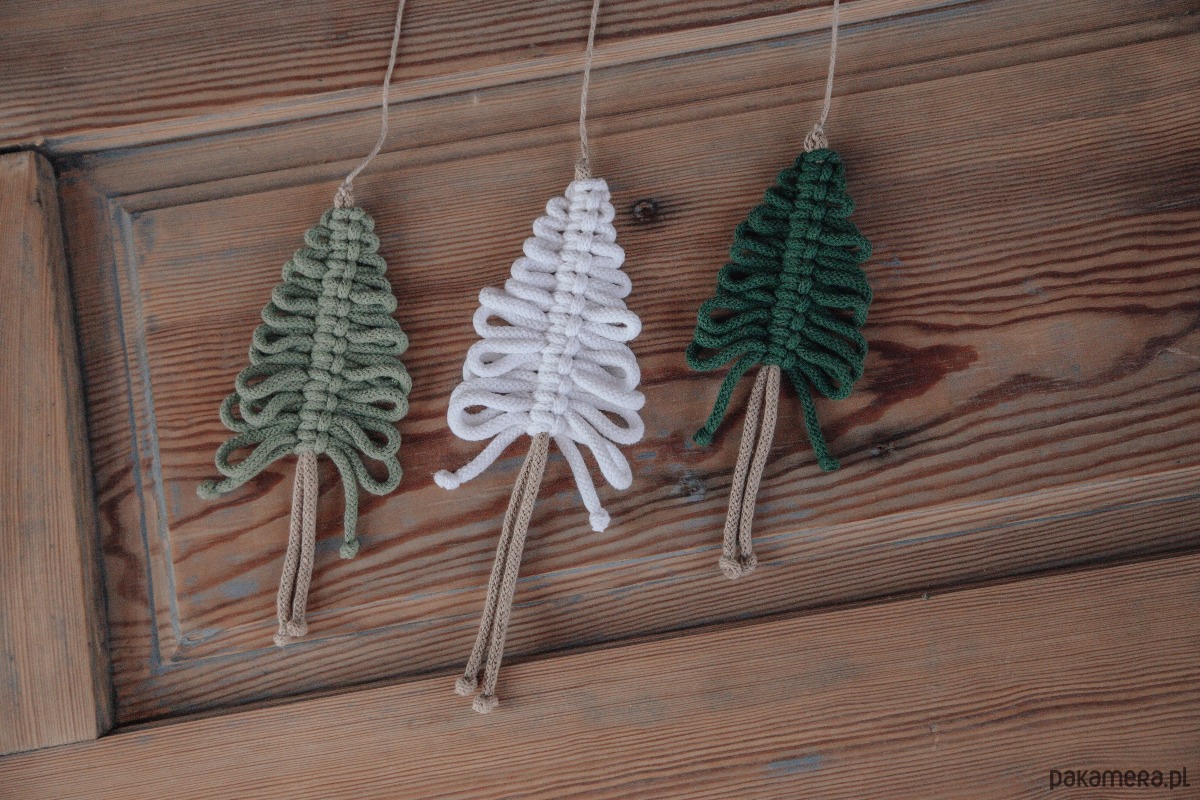 3 choinki w kolorze białym, Jasno zielonym i ciemno zielonym.. Wysokość choinki okolo 20/24 cm plus podwieszenie (okolo 1m sznurka więc można zawiesić w oknie lub dowolnym miejscu) 3 sztuki choinek.. Dostępne od ręki