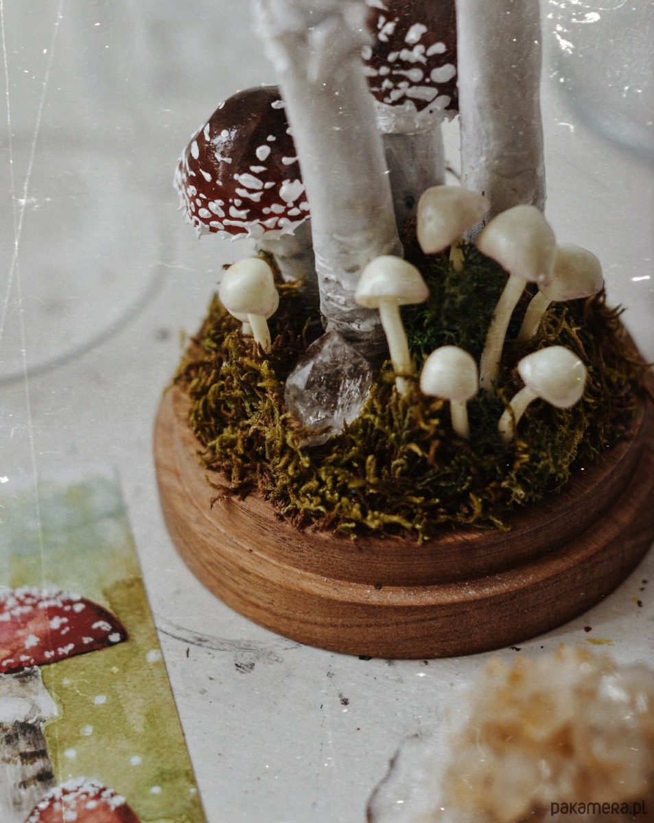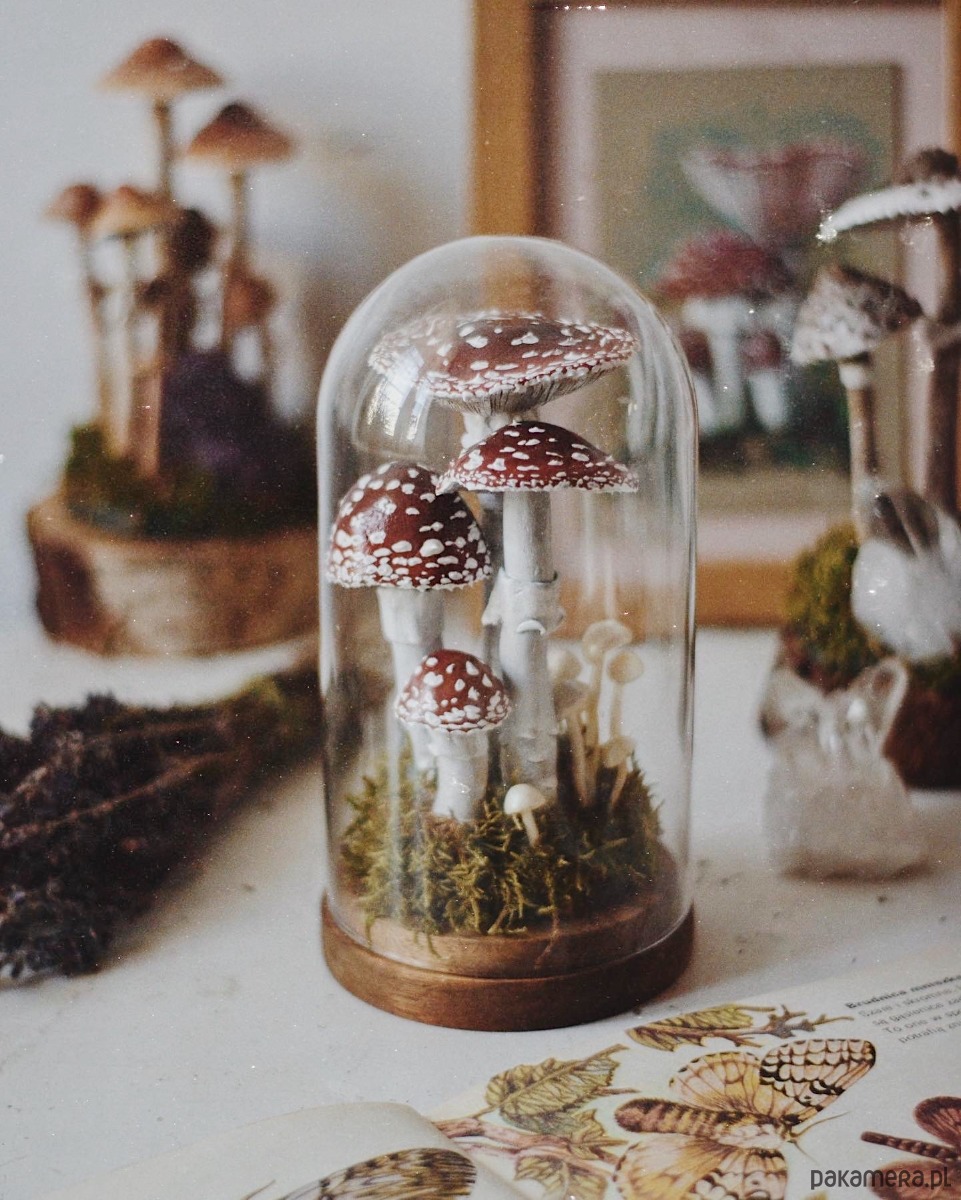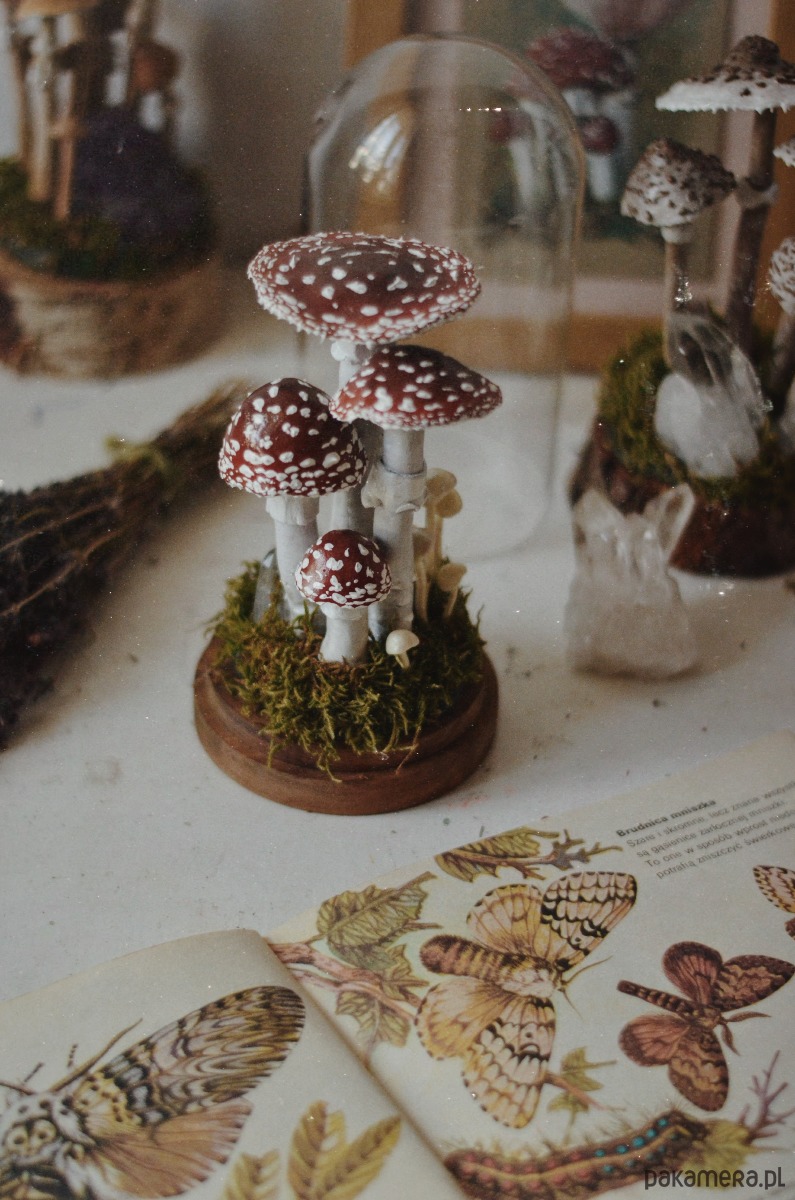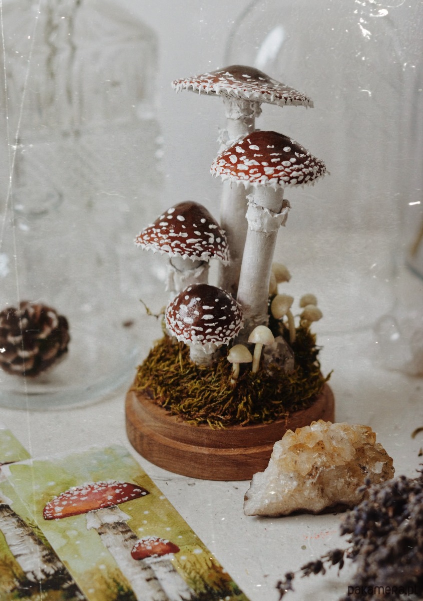 Tworzone z miłością grzybki pod szklanym kloszem napełnią Twój dom wspaniałą energią. Całość komponuje się niezwykle magicznie i uroczo!