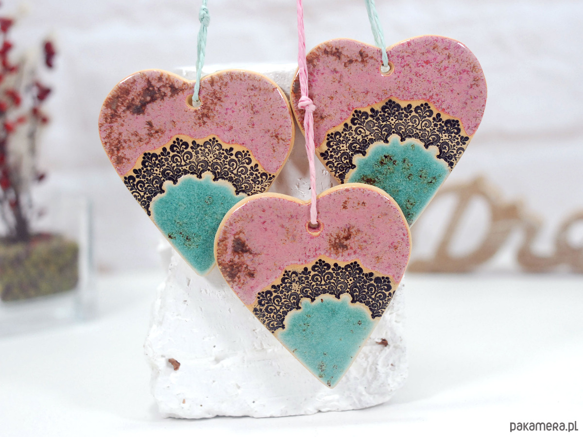 Dekoracje choinkowe serca - ozdoby ceramiczne