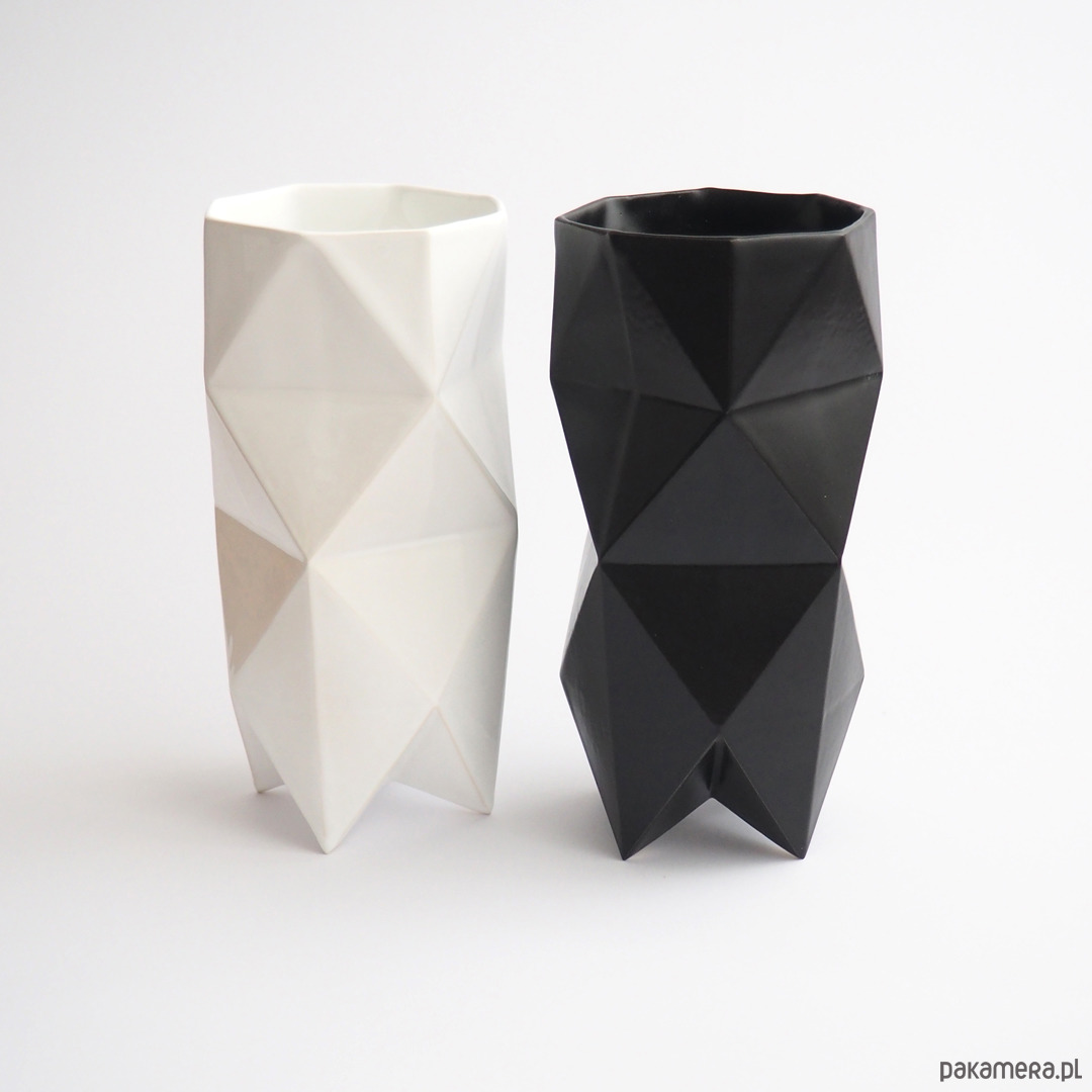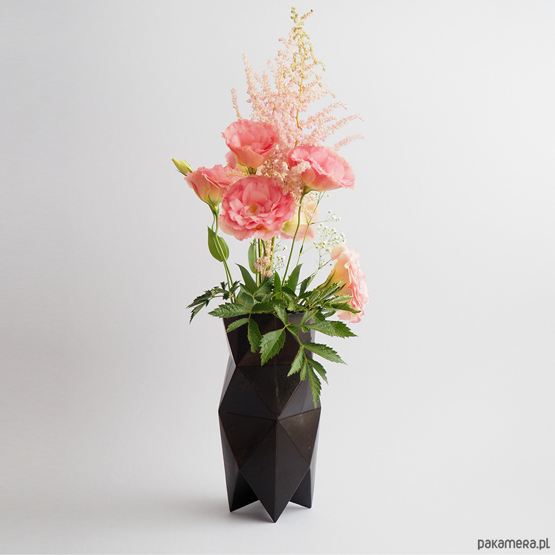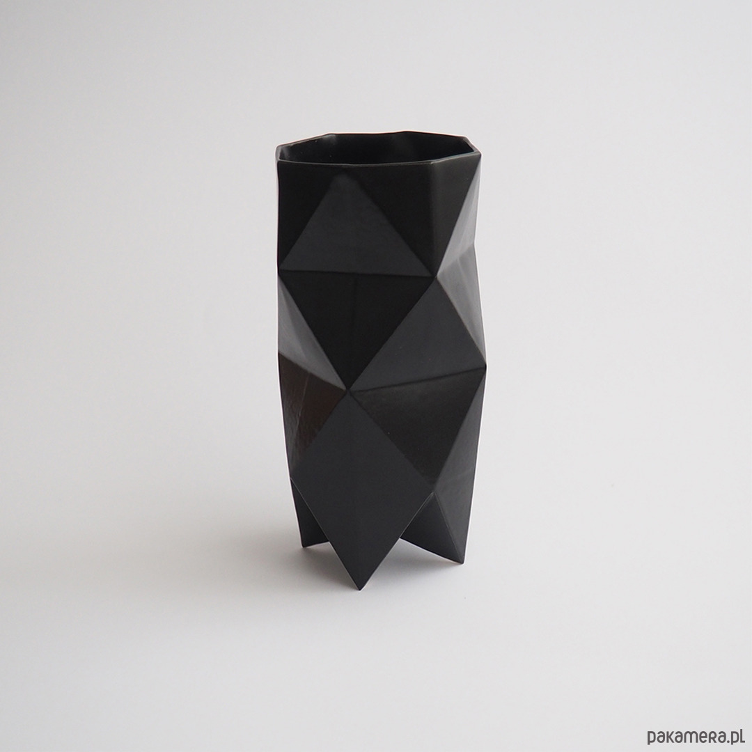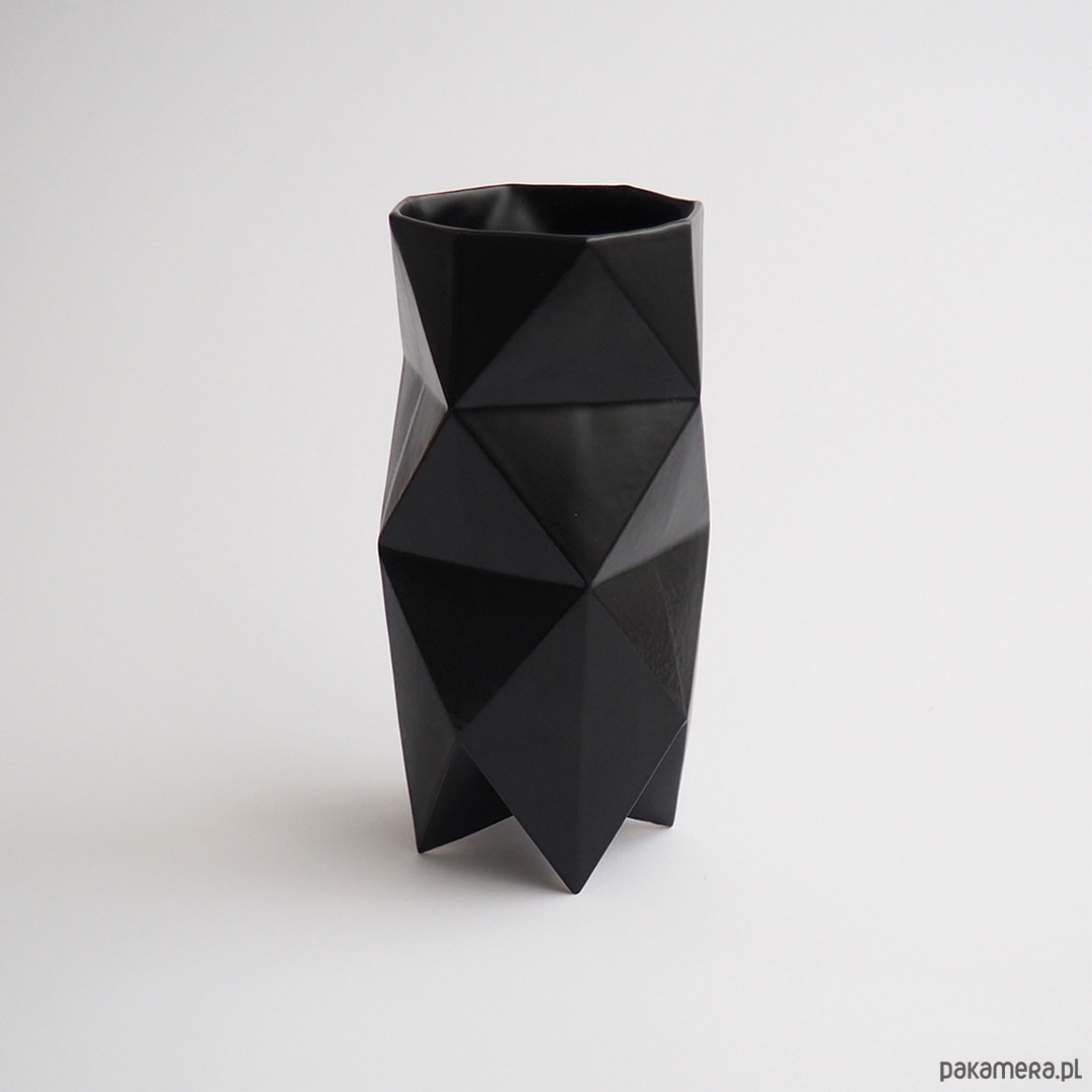 Czarny wazon ceramiczny inspirowany geometrią figur kosmicznych.