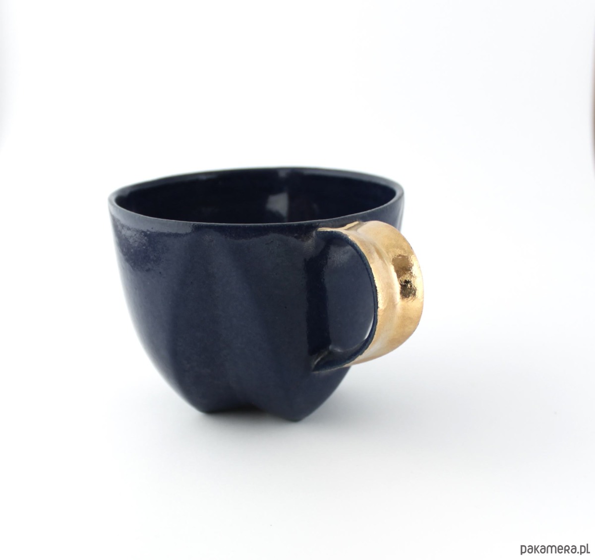 Filiżanka ze złoconym ręcznie malowanym uchem.