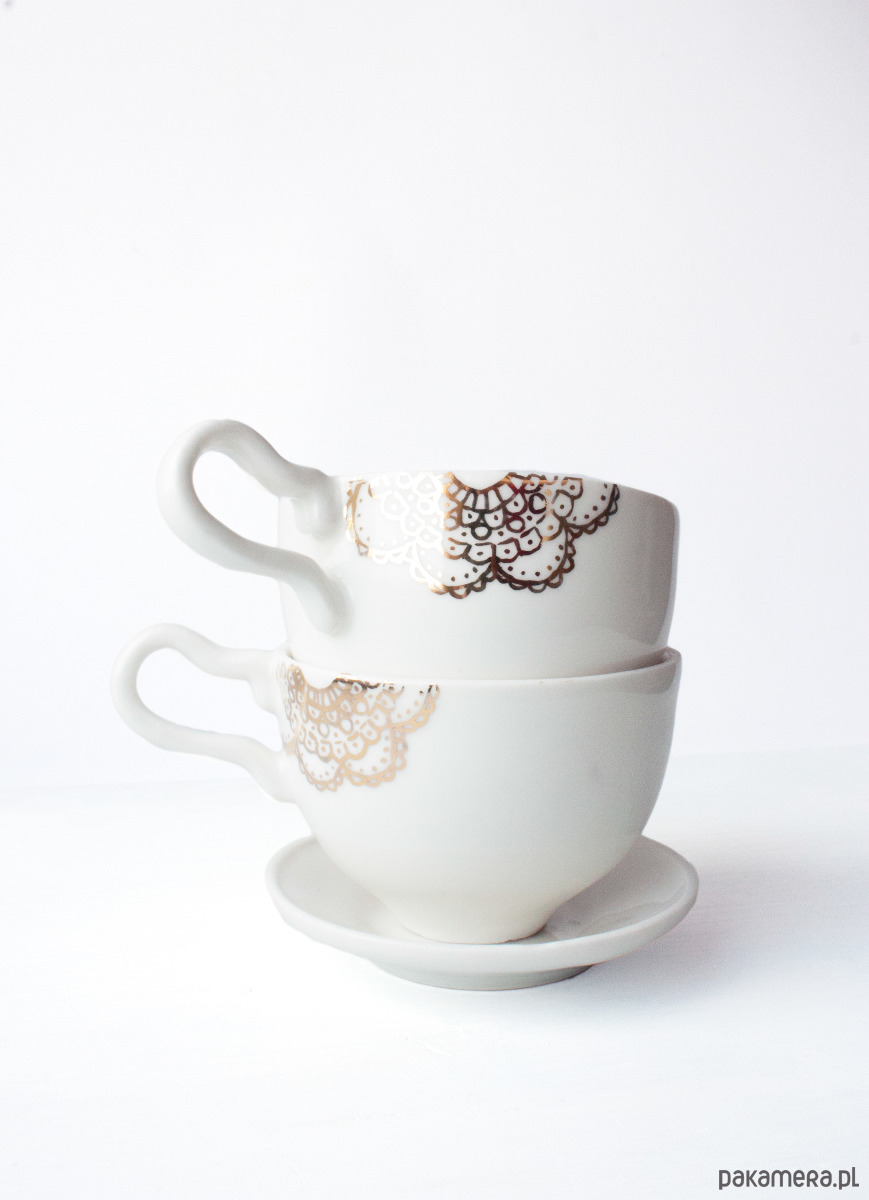 Filiżanki będą wspaniałym prezentem i ozdobą każdego stołu. Dobrze komponują się z koronkowymi serwetkami.
