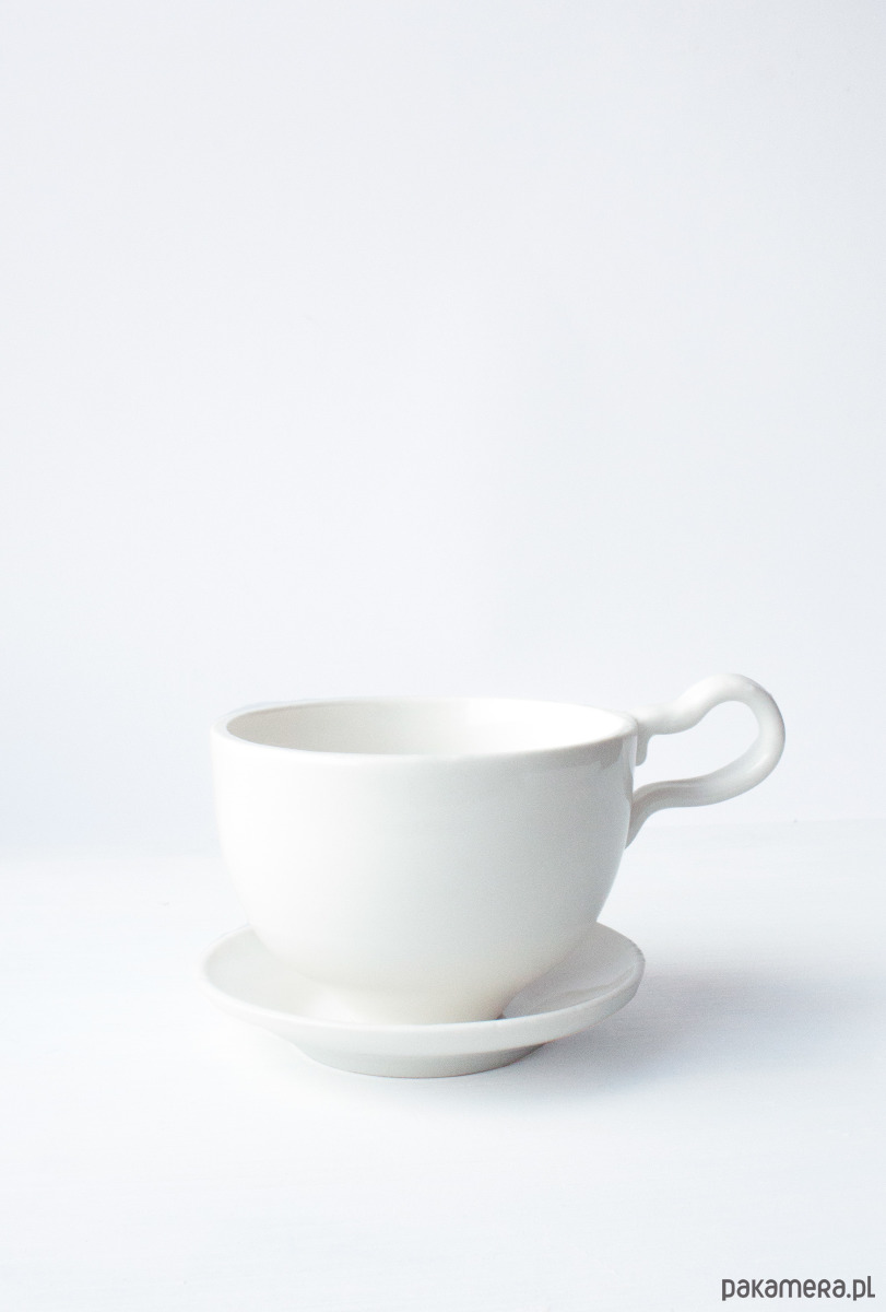 Filiżanka ma ok 6 cm wysokości i ok. 200 ml pojemności, ucho ma ok. 3 cm szerokości.