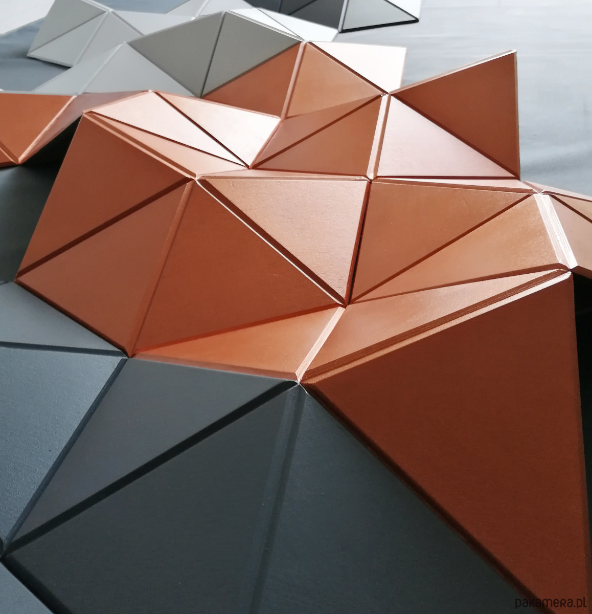 Wykończenie elementów kolorowych: Ciemny szary — RAL 7015 i popielaty — RAL 7047, miedź (wykończenie satynowe)