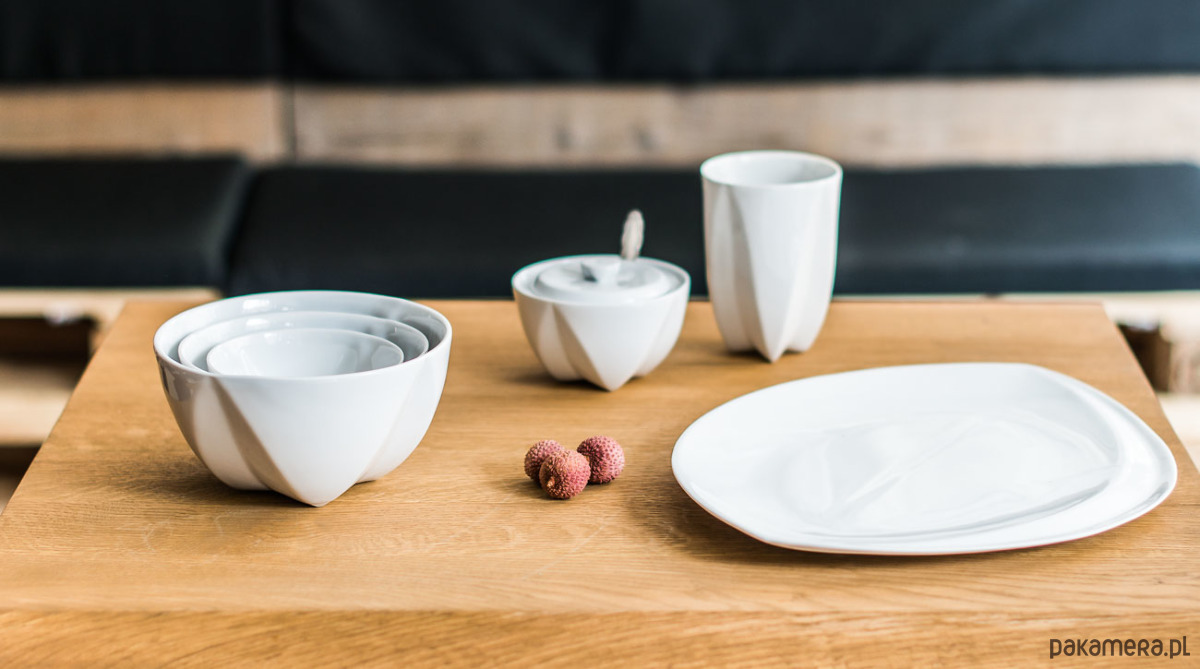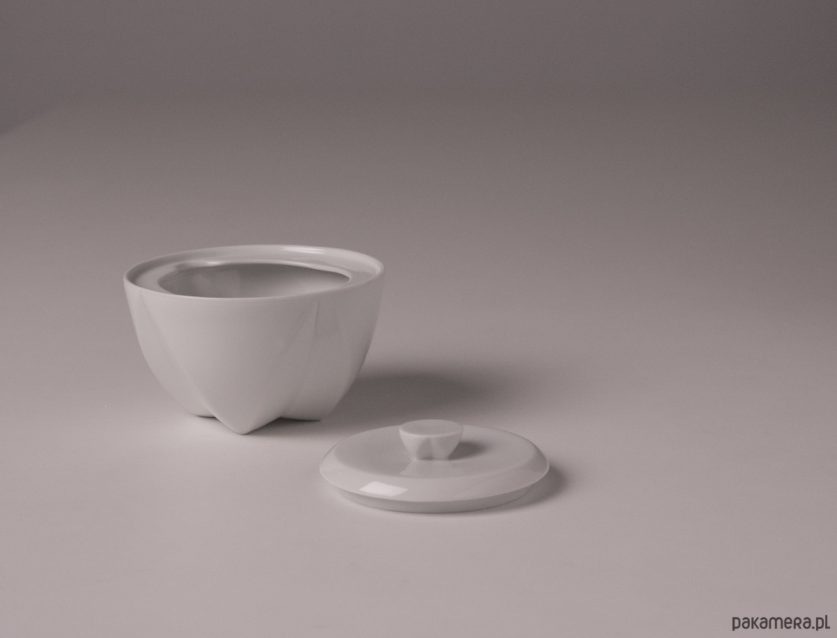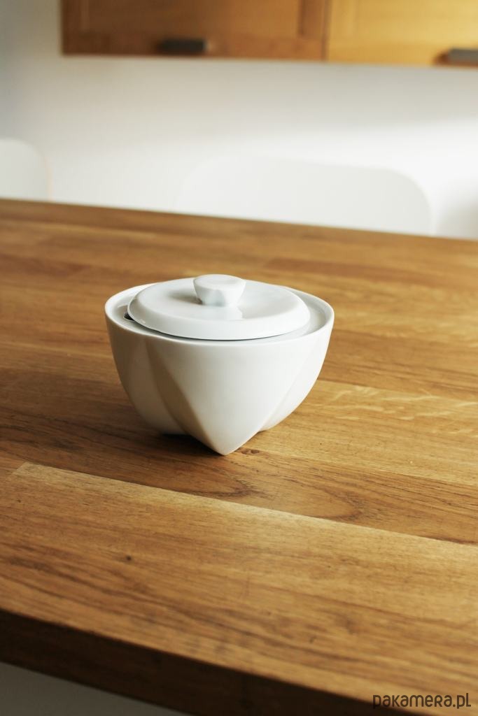 Cukierniczka jest częścią kolekcji "All inclusive - garnitur stołowy" inspirowanym szkłem kryształowym.