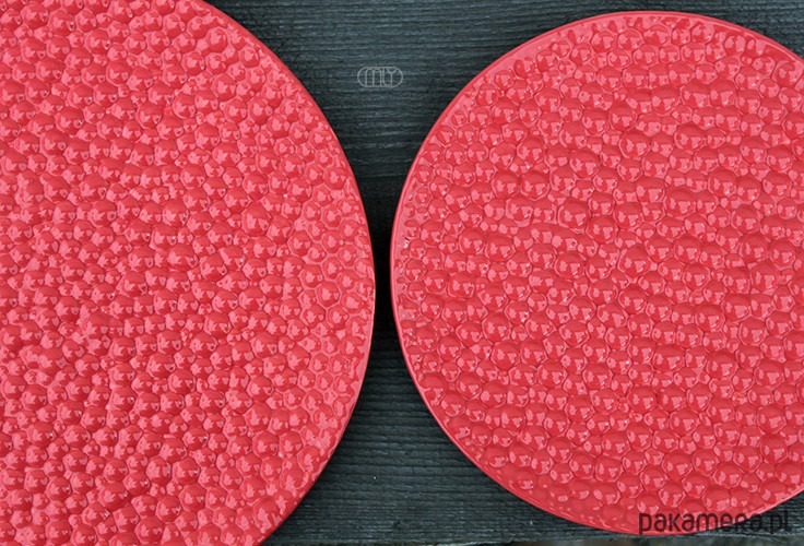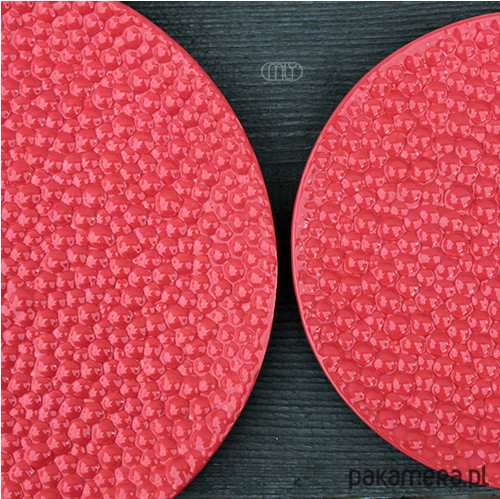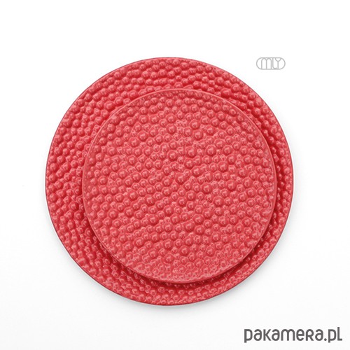 Komplet dwóch efektownych ceramicznych talerzy, ręcznie wykonanych z jasnobeżowej masy kamionkowej, inspirowanych motywami biologicznymi, obustronnie szkliwionych błyszczącym czerwono różowym szkliwem w odcieniu koralowym.Średnica ok 24cm i 19cm. Wykonywany na zamówienie, czas realizacji około 10dni. Na zamówienie dostępny również w innych wersjach kolorystycznych. Szkliwo przeznaczone do kontaktu z żywnością