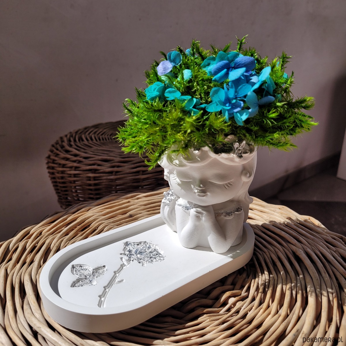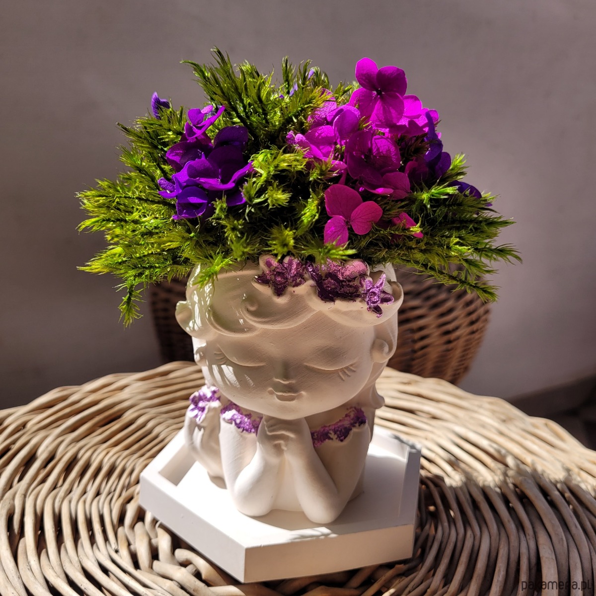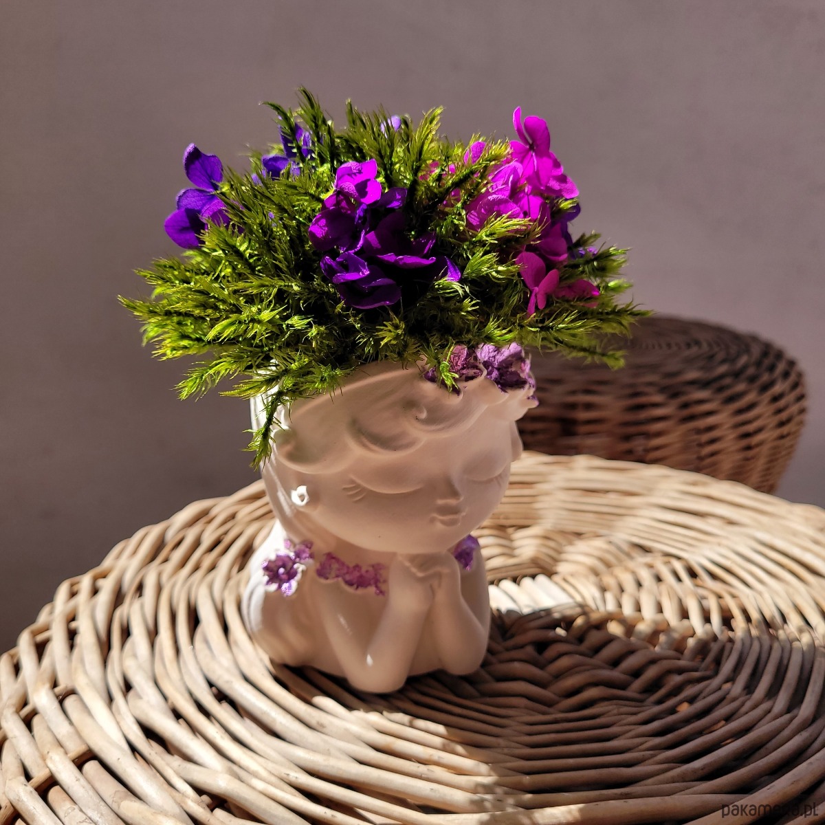 Dekoracyjna doniczka dziewczynka z mchem I kwiatami