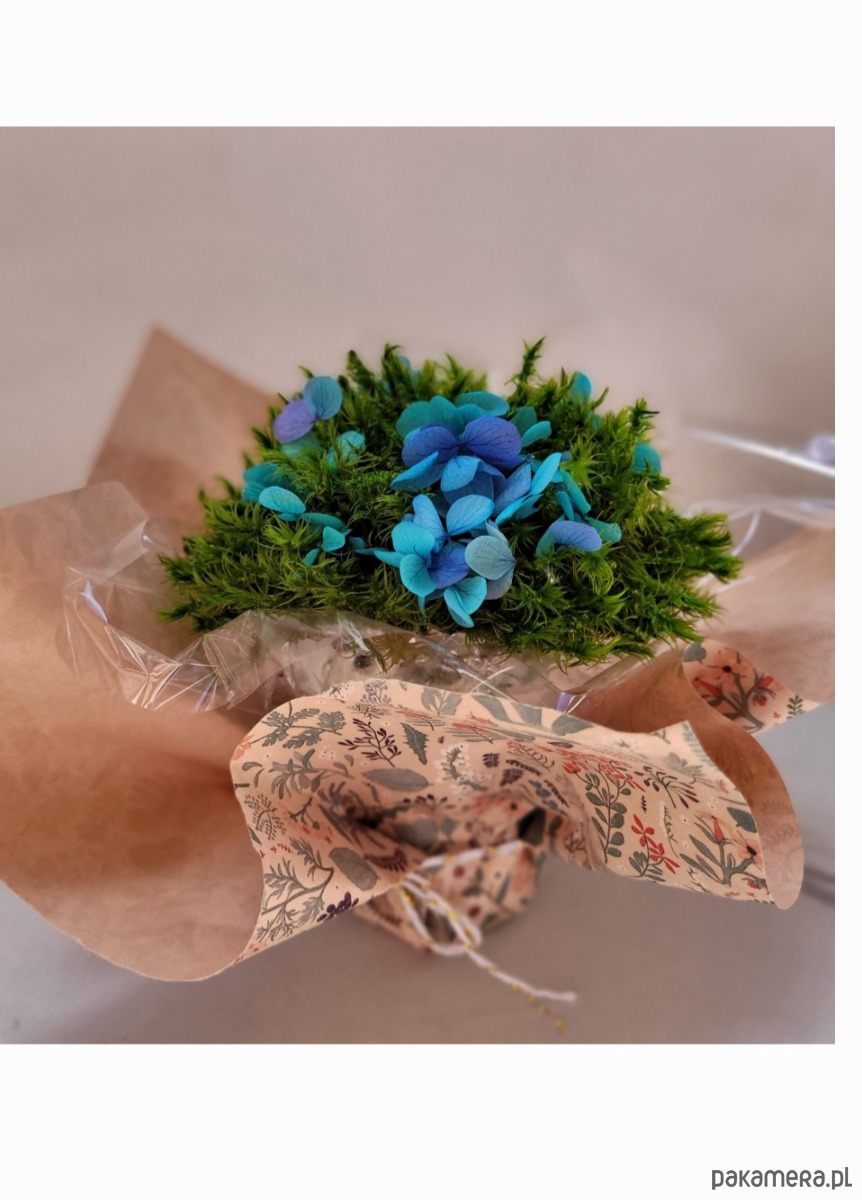 * Fryzura z mchu i suszonych kwiatów tworzy efekt żywej zieleni.