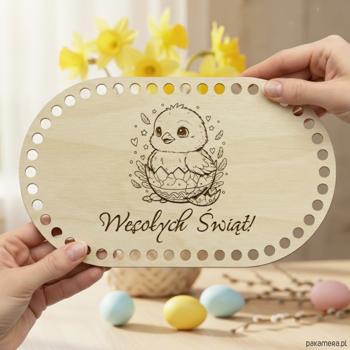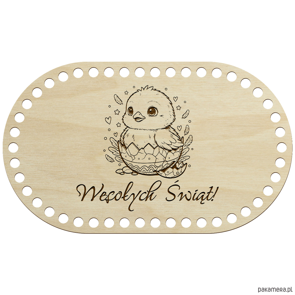Drewniana baza wielkanocna do szydełkowania w kształcie owalu to idealna podstawa do tworzenia drobnych, ręcznie robionych dekoracji świątecznych. Naturalne drewno i precyzyjne wycięcia sprawiają, że praca z nią jest łatwa i przyjemna.
