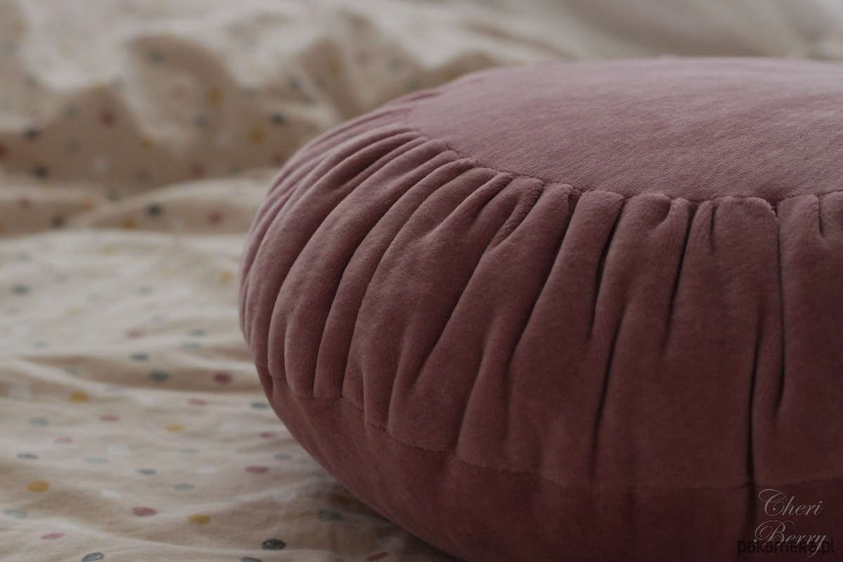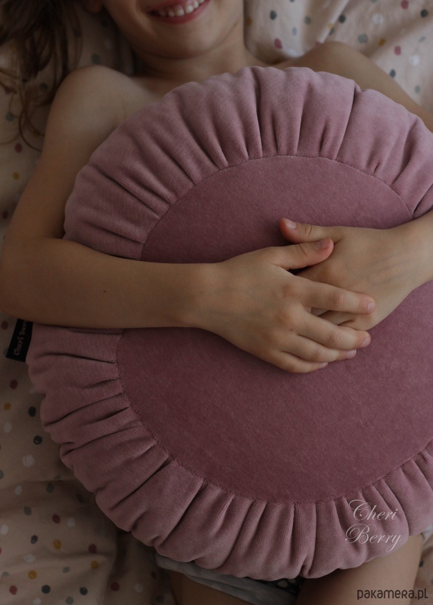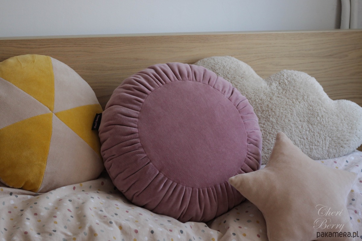 Okrągła i mięciutka welurowa poduszka w stylu vintage. Została uszyta z delikatnego, bawełnianego weluru w standardzie Oeco-Tex. Idealnie sprawdzi się w dziecięcych pokoikach i nie tylko.