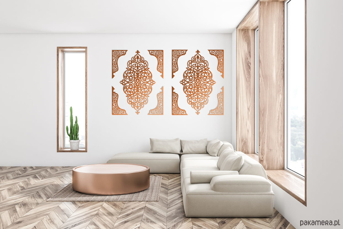 Dekoracyjna grafika inspirowana tradycyjnym ornamentem marokańskim wniesie do Twojego wnętrza nutę orientu.Oryginalna dekoracja ścienna 3D ozdobi Twoją ścianę w salonie czy w sypialni, idealna nad sofę, łóżko czy komodę. Stylowa dekoracja będąca unikalnym elementem Twojej aranżacji.