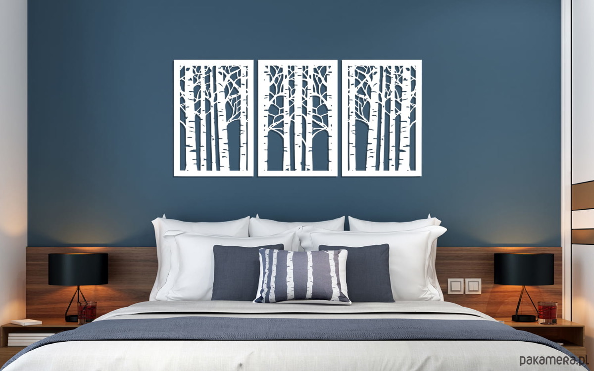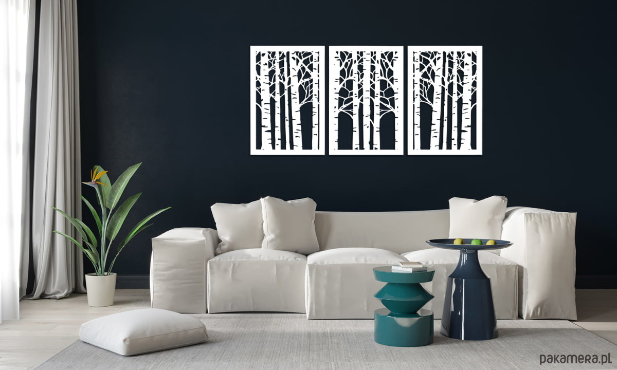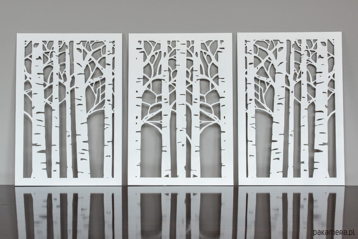 DEKORACYJNE PANELE AŻUROWE, TRYPTYK, BRZOZY, LAS, AŻUROWA DEKORACJA ŚCIENNA 3