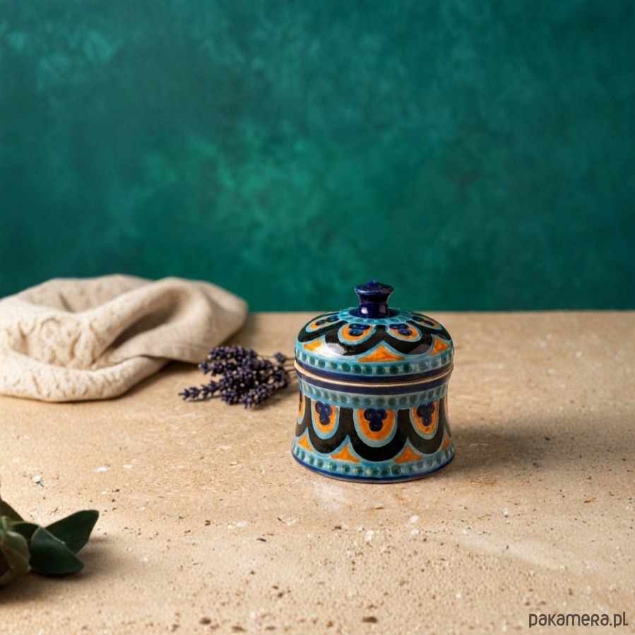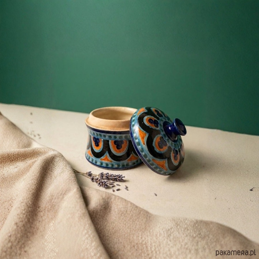 Dekoracyjne puzderko z ceramiki w artystycznym styl