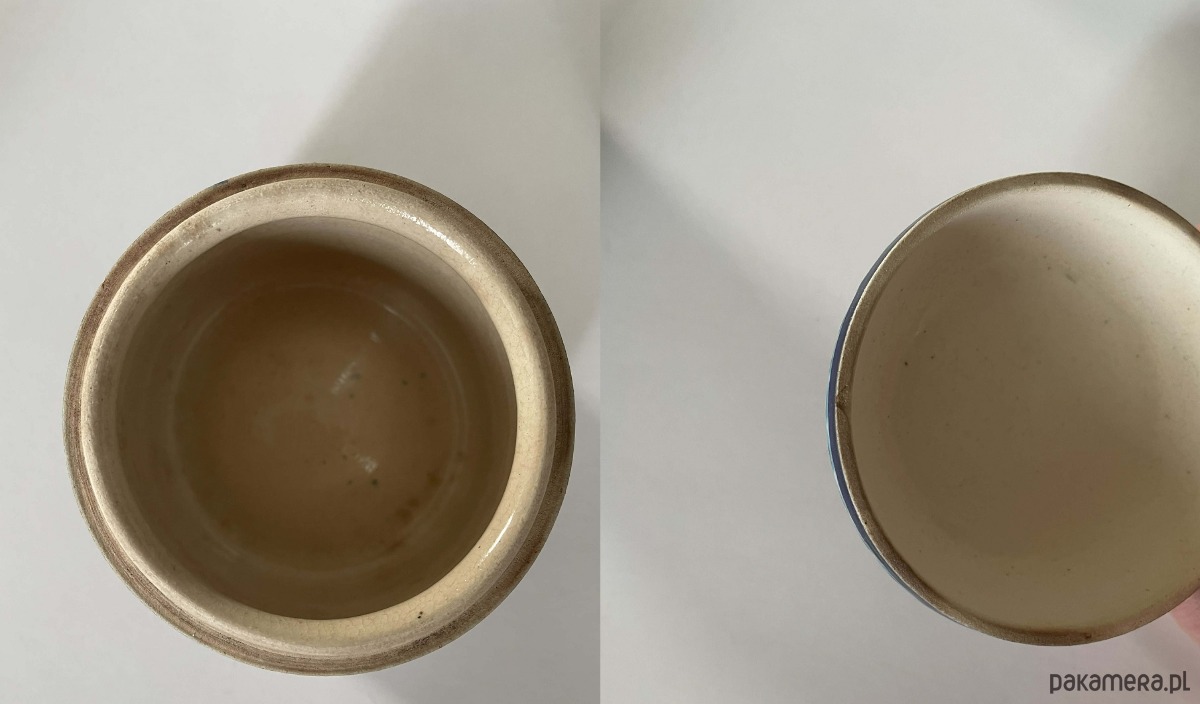 Puzderko jest autentycznym przedmiotem vintage, a drobne niedoskonałości szkliwa i odpryski widoczne na krawędzi to naturalny ślad jego wieloletniej historii, który nadaje mu niepowtarzalny charakter i duszę.