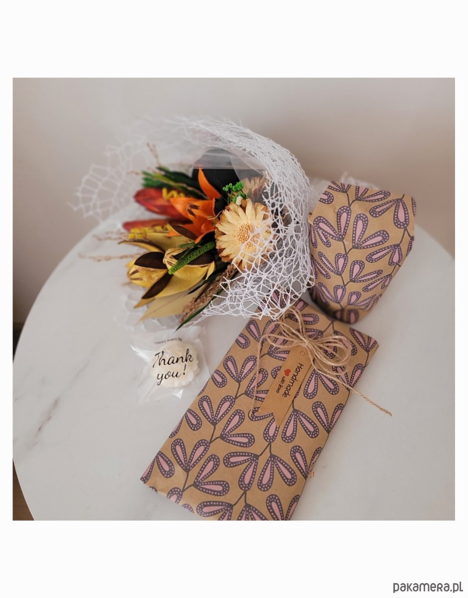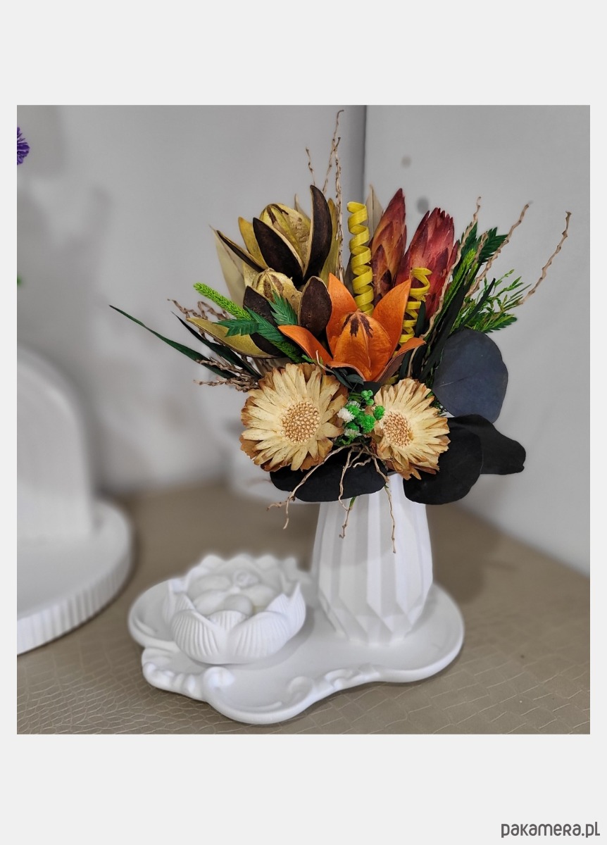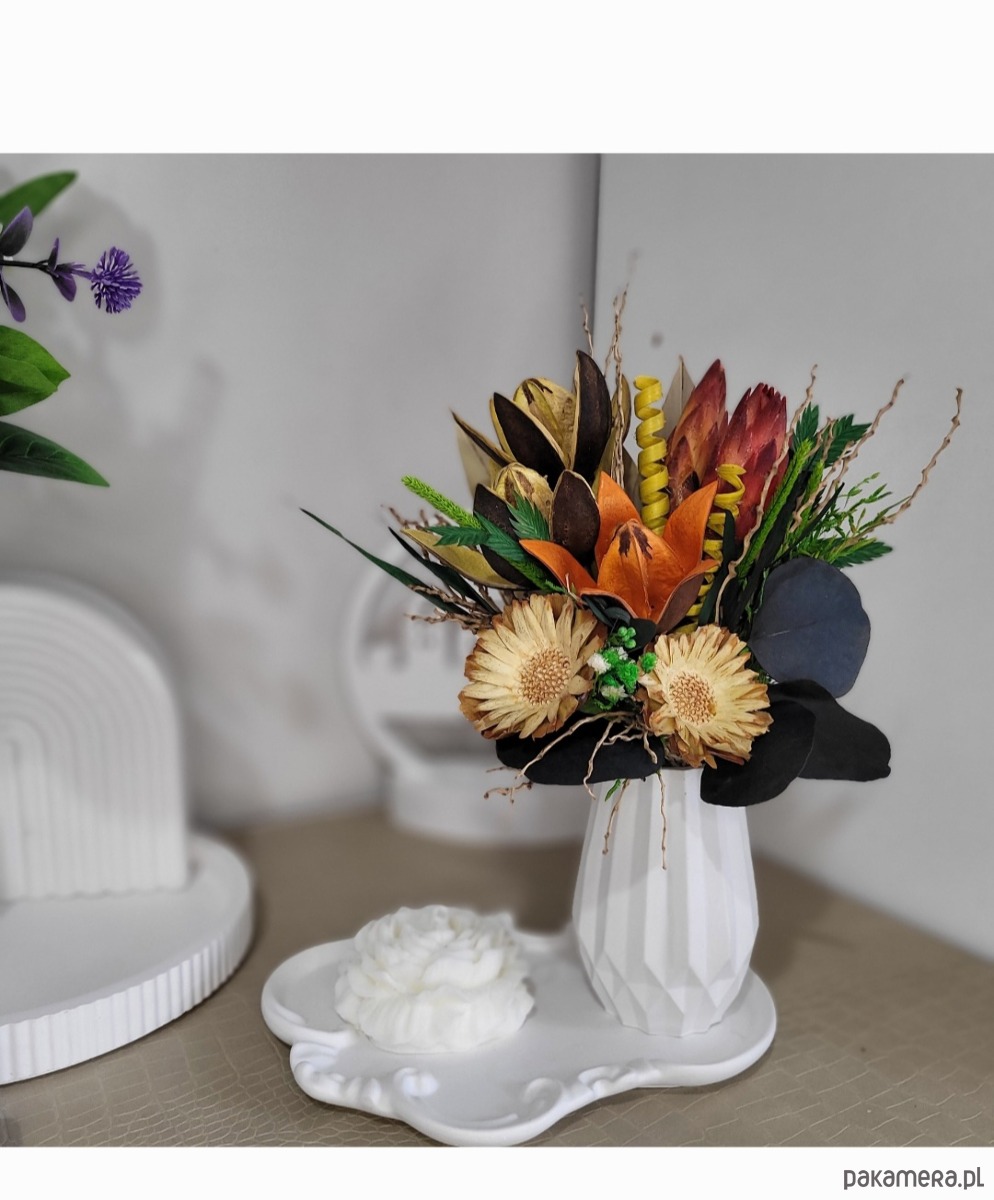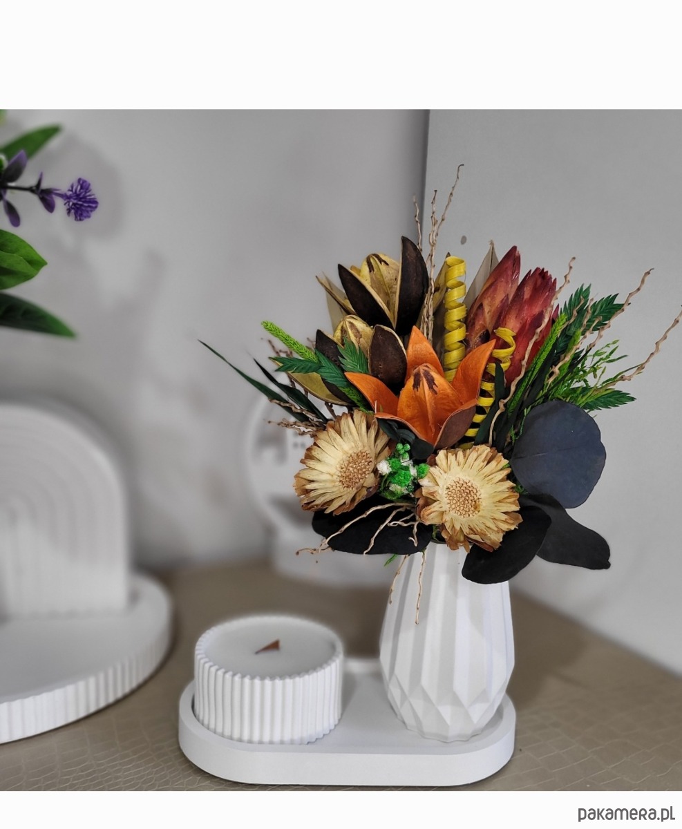 Zdjęcie 1 Bukiet, wazon,podstawka + świeca sojowa zapachowa w pojemniku ( 4,5 × 5,5 cm.)