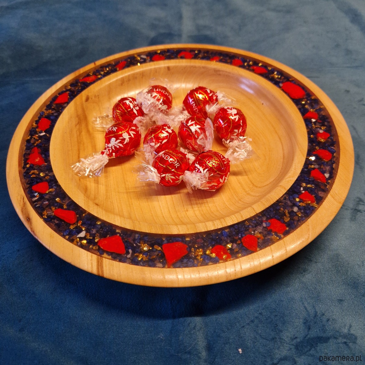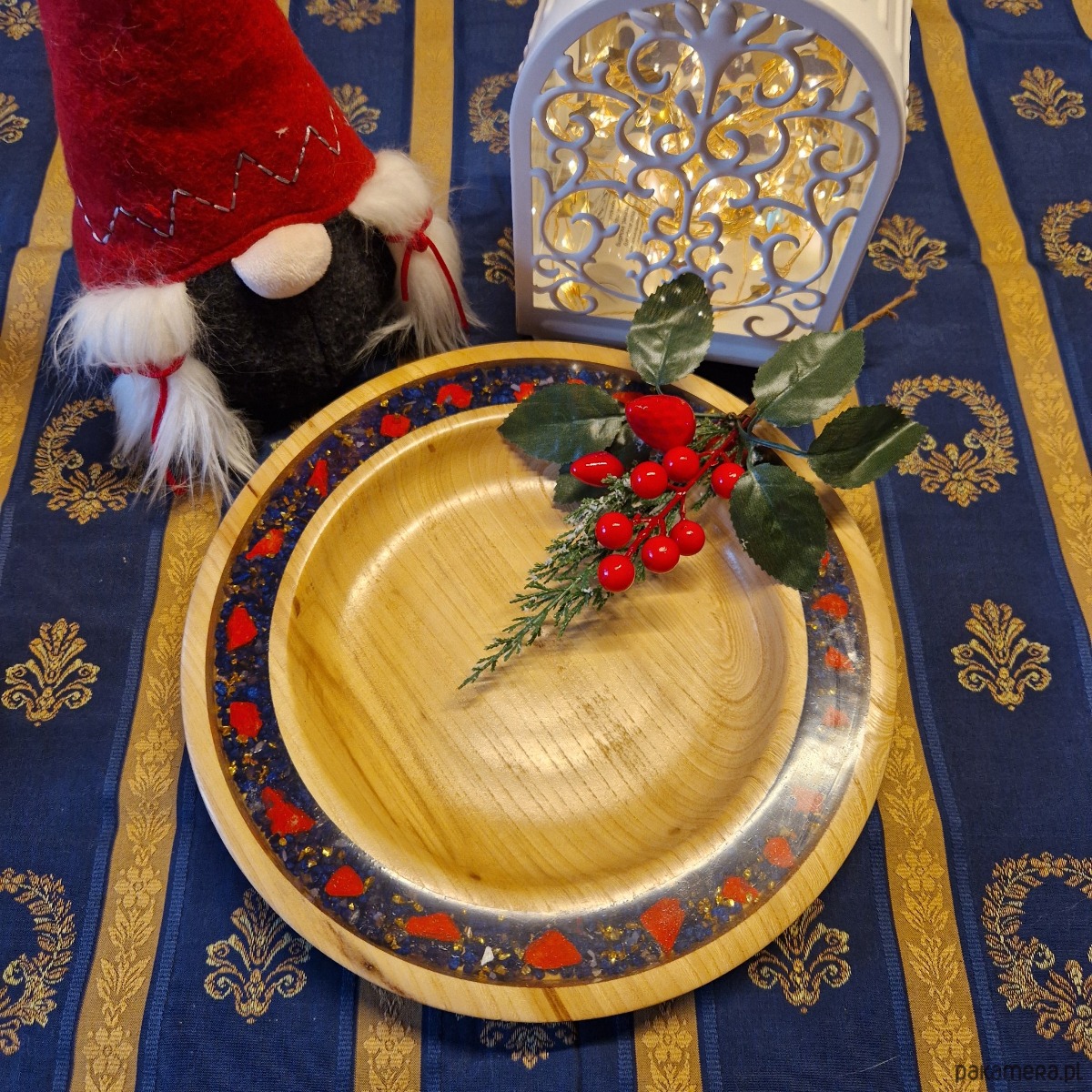 Ta dekoracyjna drewniana patera zachęca do wyobrażenia sobie, że zagłębiasz się w smocze jaskinie - królestwo dymu, cienia i stopionego światła. Powietrze mieni się gorącem, a żyły czerwieni i złota pulsują w skale niczym życiodajna krew samej góry. Gdzieś w ciemności brzęczą monety, błyszczą klejnoty, a słaby oddech ostrzega, że nie jesteś sam. Bo choć skarb olśniewa oko, nie wszystko, co się świeci, jest złotem... a niektóre błyski należą do czujnego spojrzenia smoków. Czy jesteś wystarczająco odważny, by się zatrzymać?