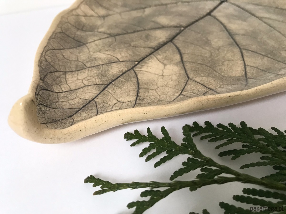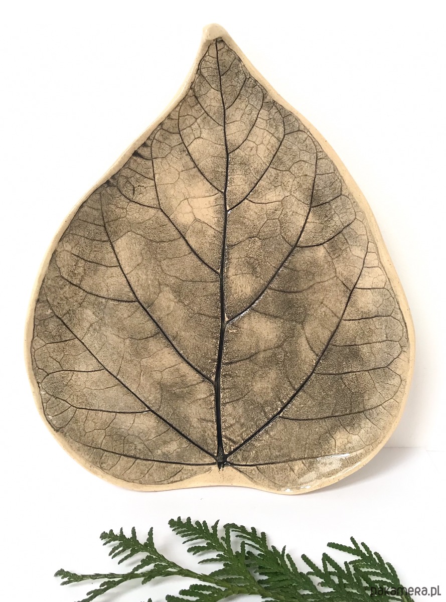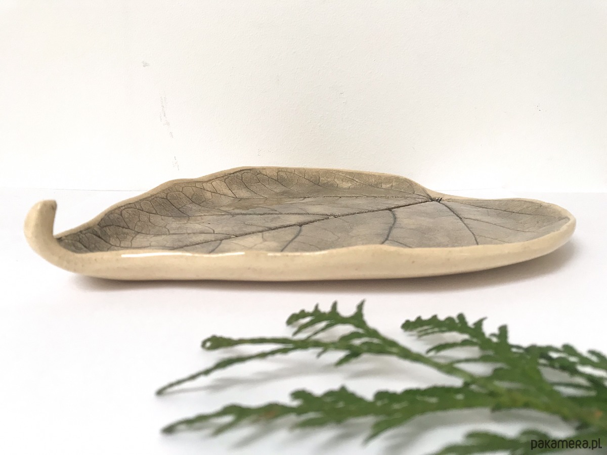 Bardzo oryginalny, ceramiczny, lekko wywijany po bokach talerz