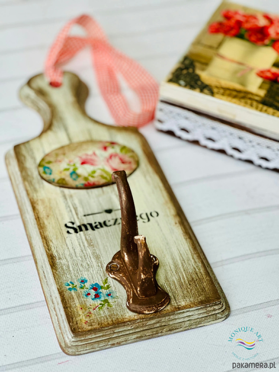 Dekoracyjny wieszak na ścianę z drewna, styl rustykalny, smacznego