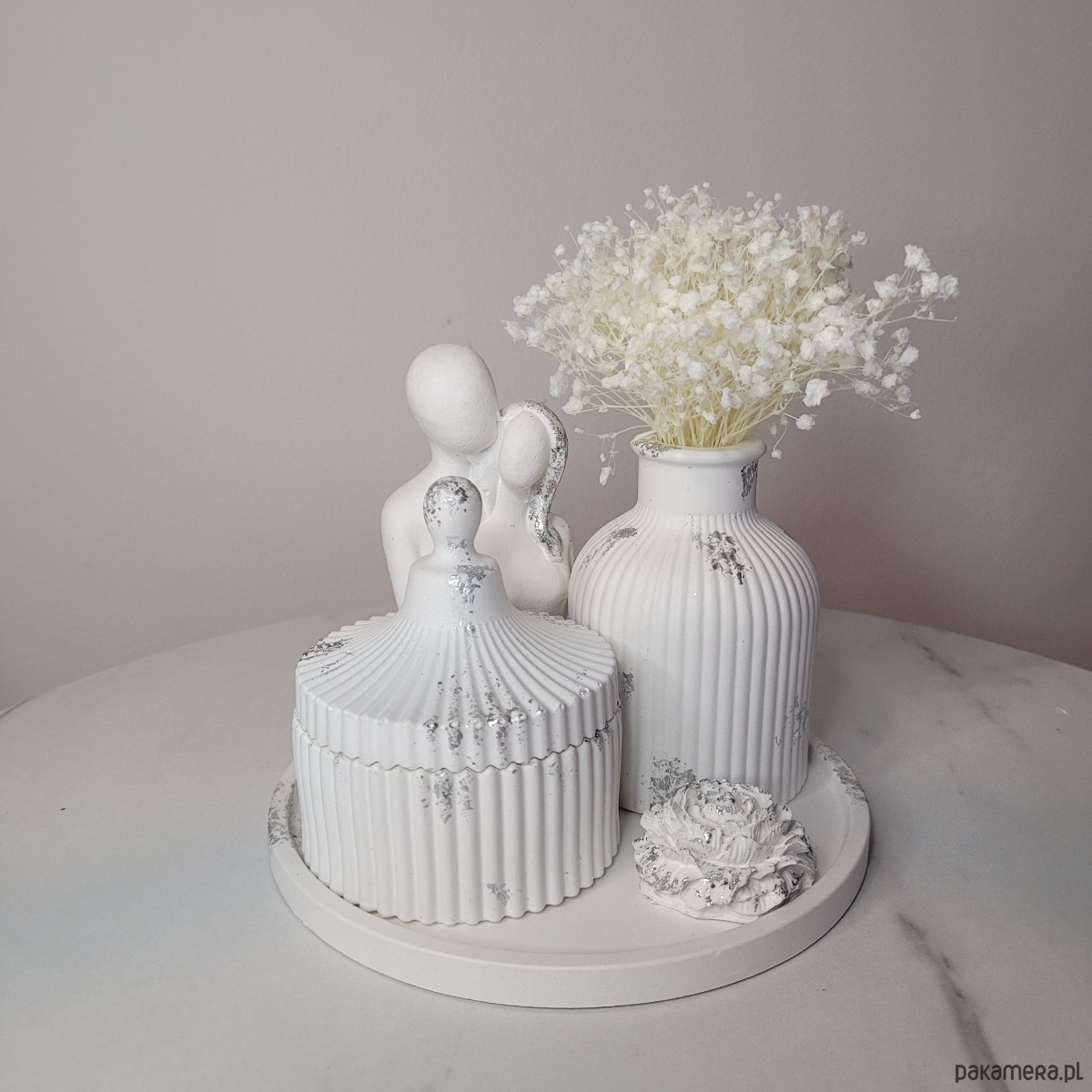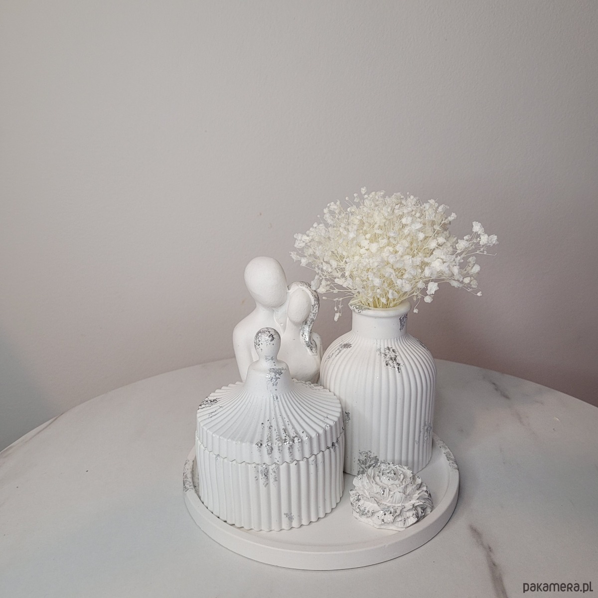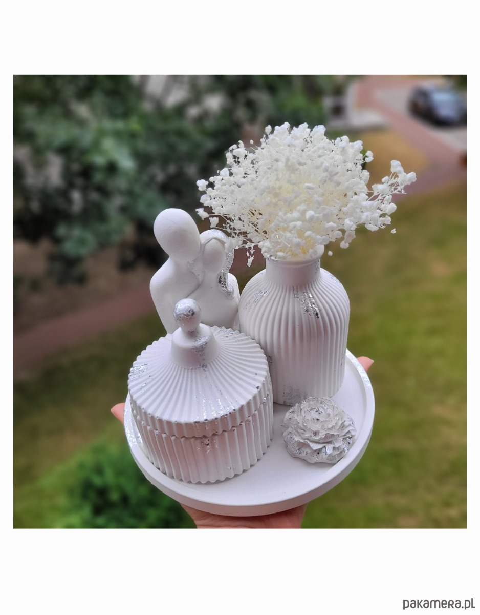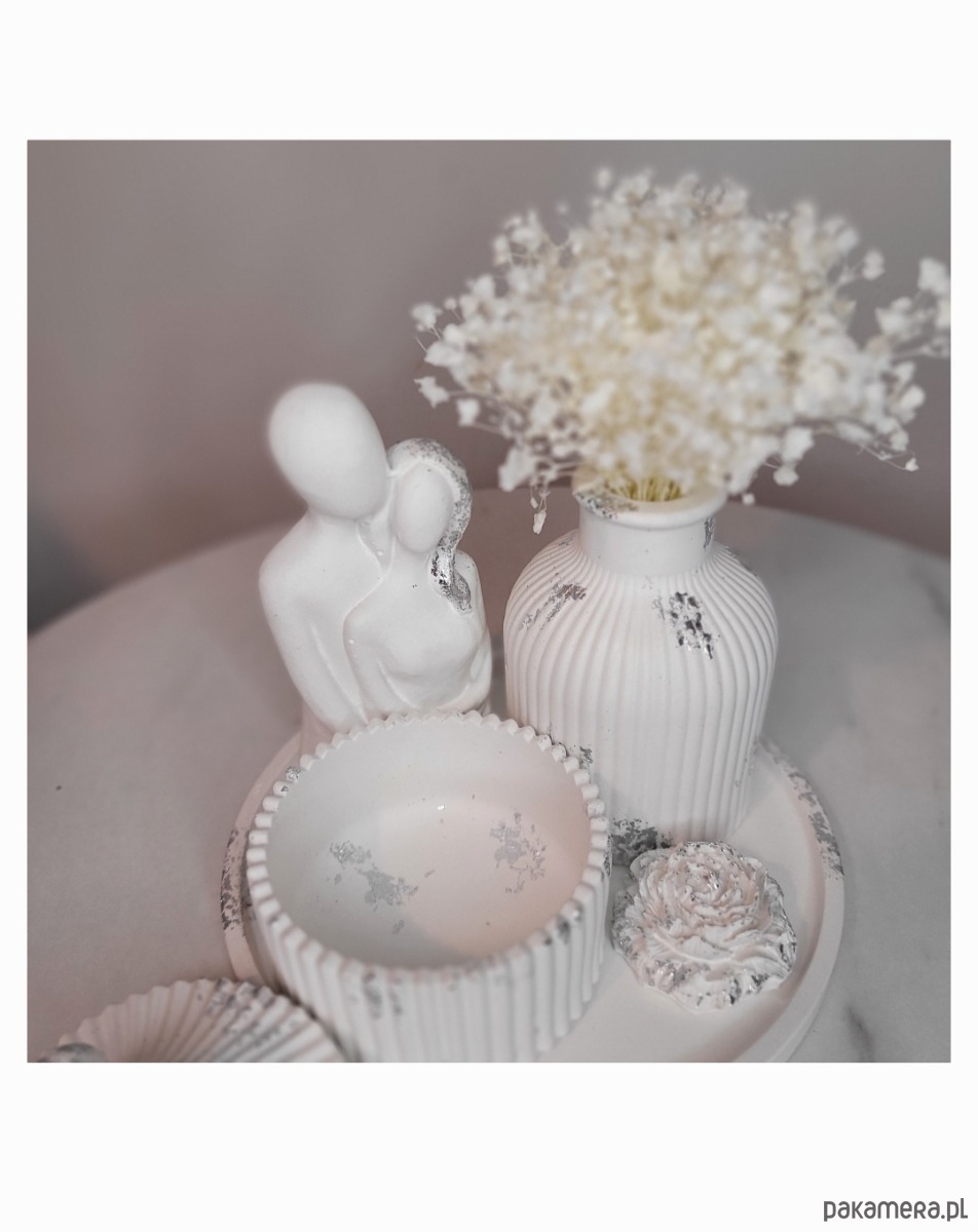 Dodaj odrobinę klasy i delikatności do swojego wnętrza dzięki temu wyjątkowemu zestawowi dekoracyjnemu. W skład zestawu wchodzą: