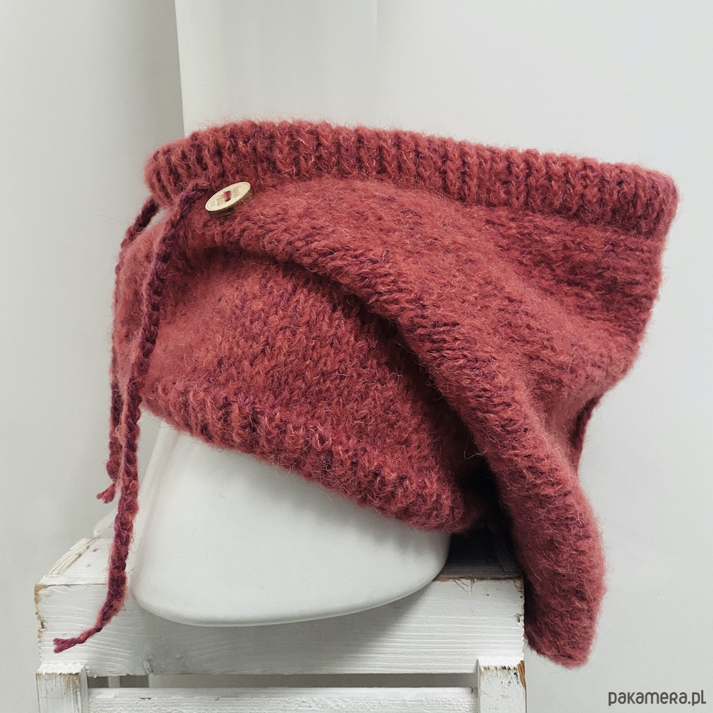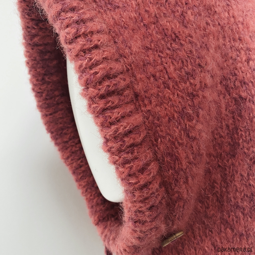 Kominiarkę oversize wykonam ręcznie na drutach z dwóch nitek wysokiej jakości miękkiej norweskiej włóczki.