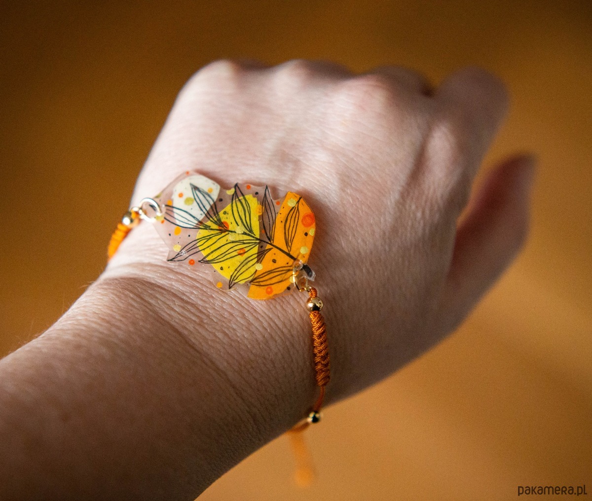 Delikatna bransoletka na sznurku z florystycznem motywem