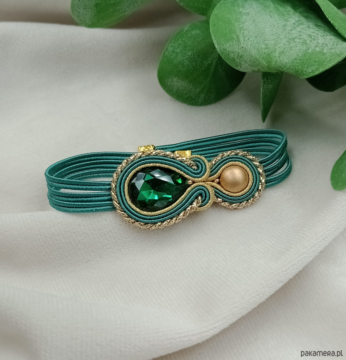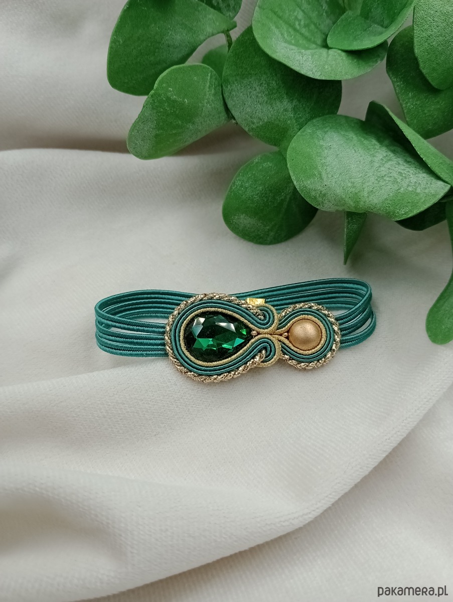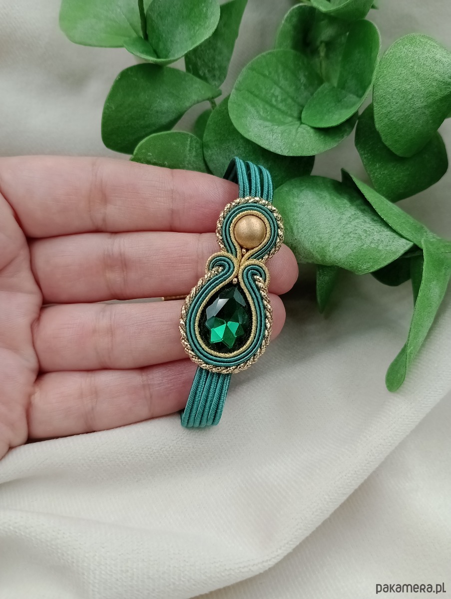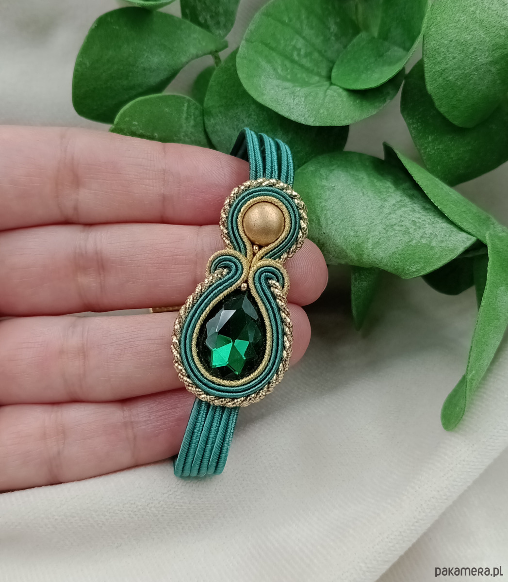 Delikatna bransoletka sutasz, zielona butelkowa złota szmaragdowa bransoletka