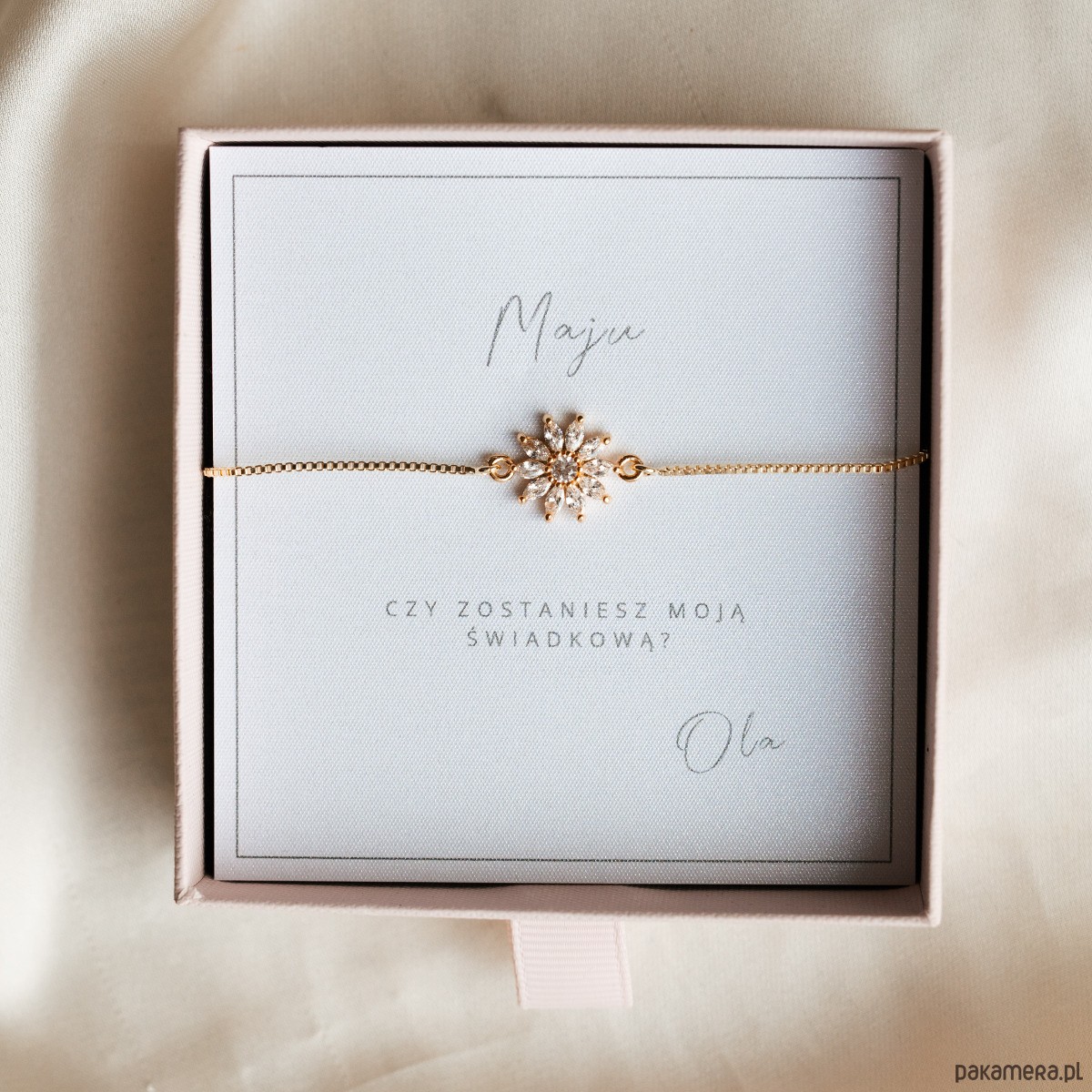 Ta bransoletka to idealny prezent, aby poprosić najlepszą przyjaciółkę, siostrę lub bliską osobę o bycie świadkową i dzielenie najważniejszego dnia w Twoim życiu
