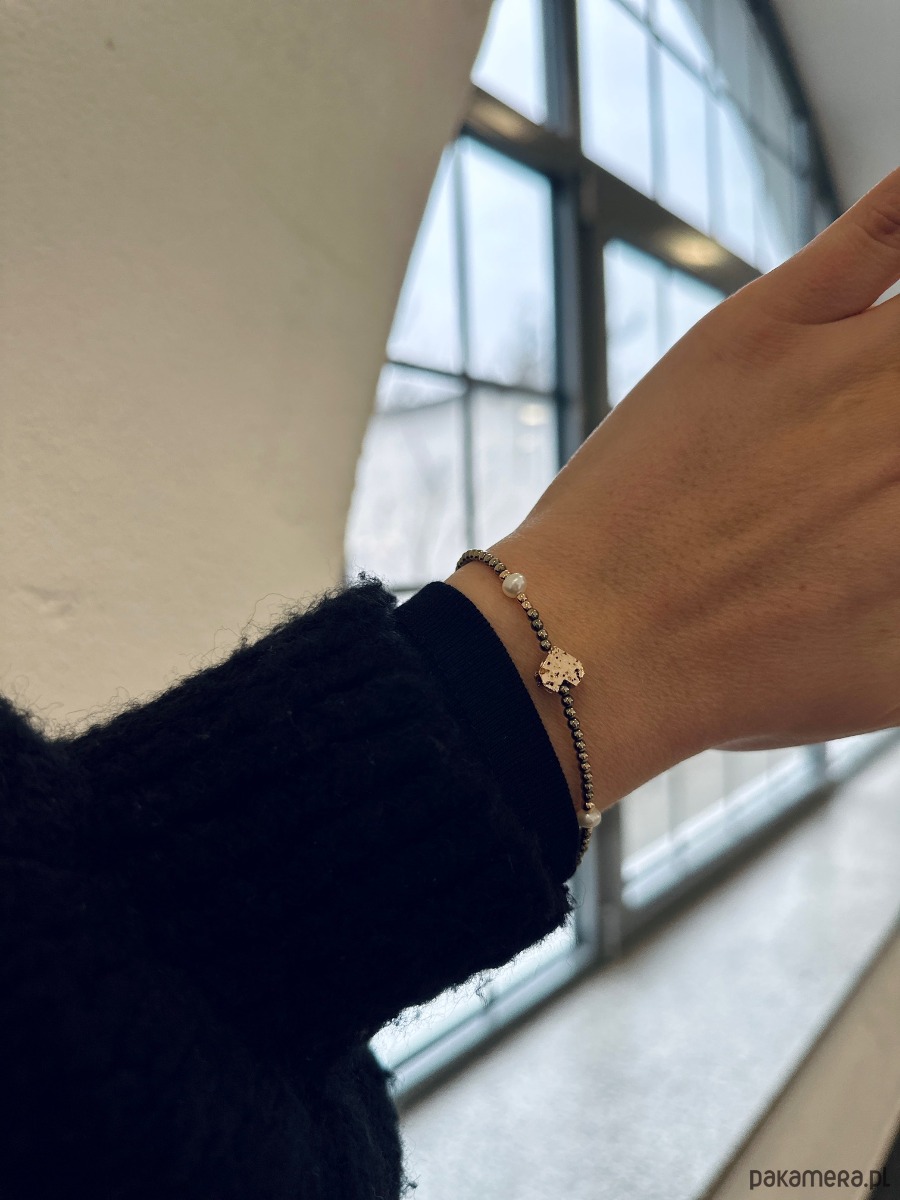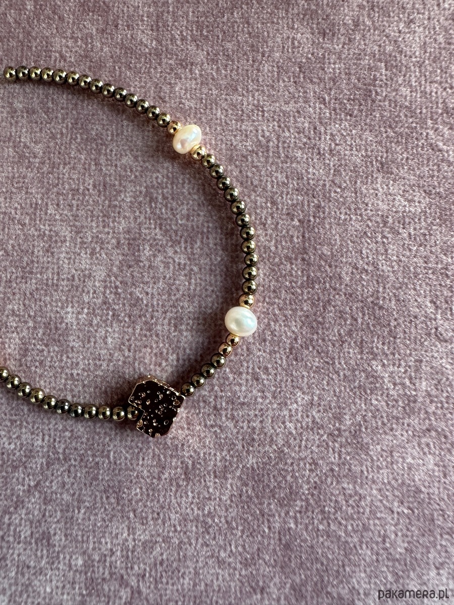 - Materiał: hematyt, perły, stal chirurgiczna