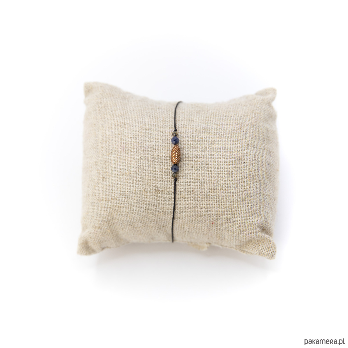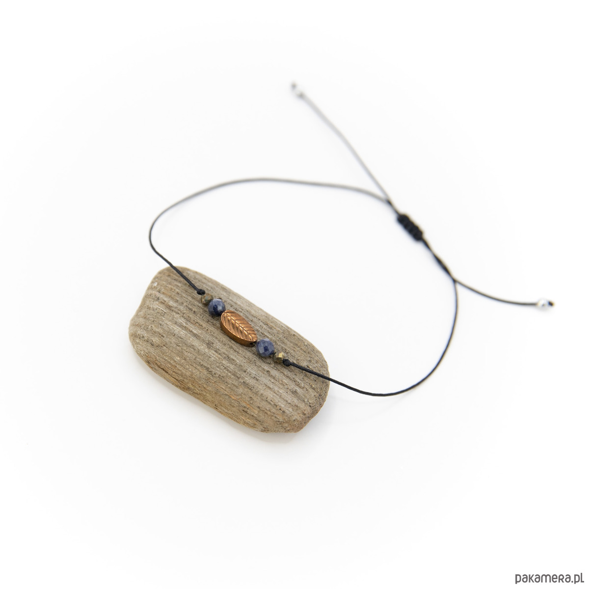 Delikatna bransoletka z szafirem i pirytem, na sznureczku