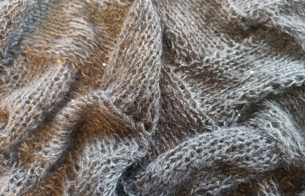Surowiec: alpaka 11%, merino 9%, wiskoza 7%, kaszmir 1% , akryl 13%, PL 41%, PA 18%, cekiny