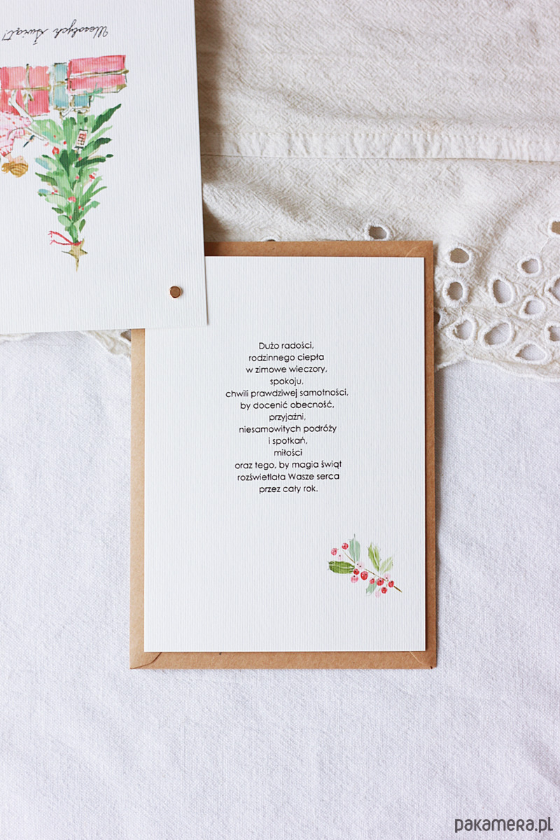 Grafika i życzenia nadrukowane są na grubym (300 g), fakturowanym papierze w kolorze śmietanowym.