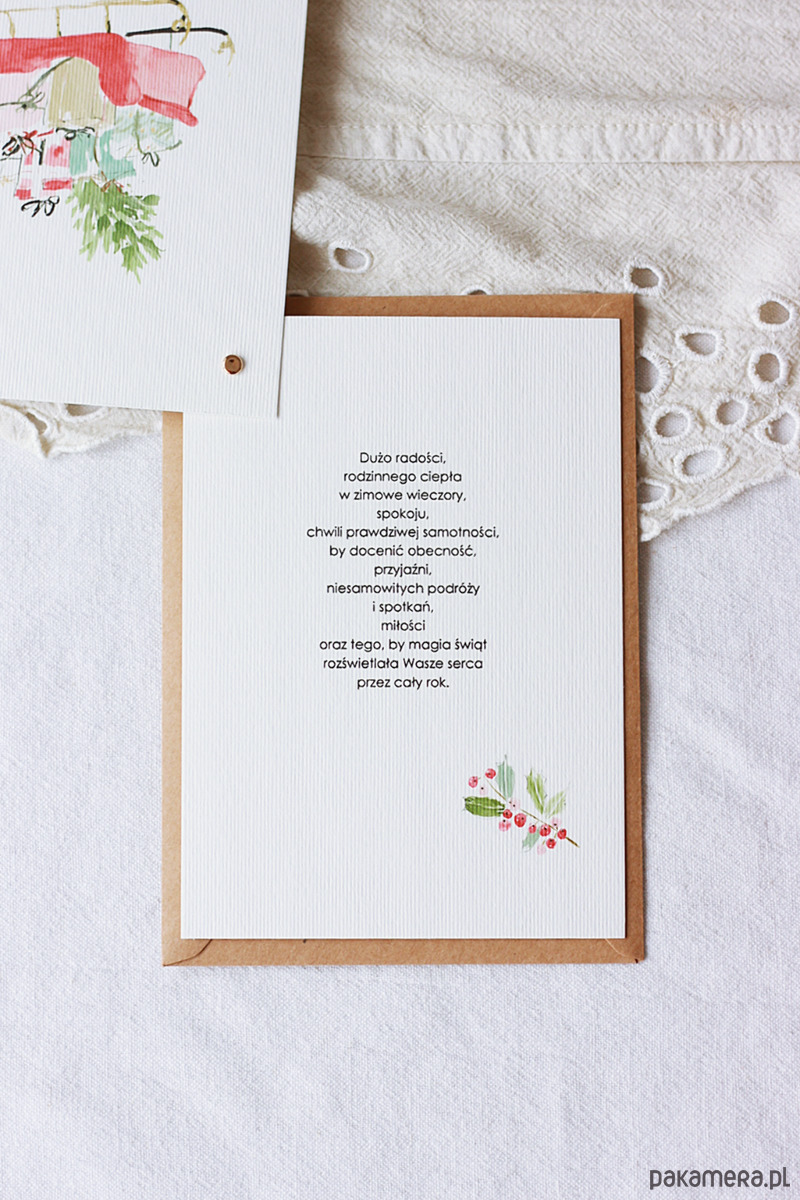Grafika i życzenia nadrukowane są na grubym (300 g), fakturowanym papierze w kolorze śmietanowym.