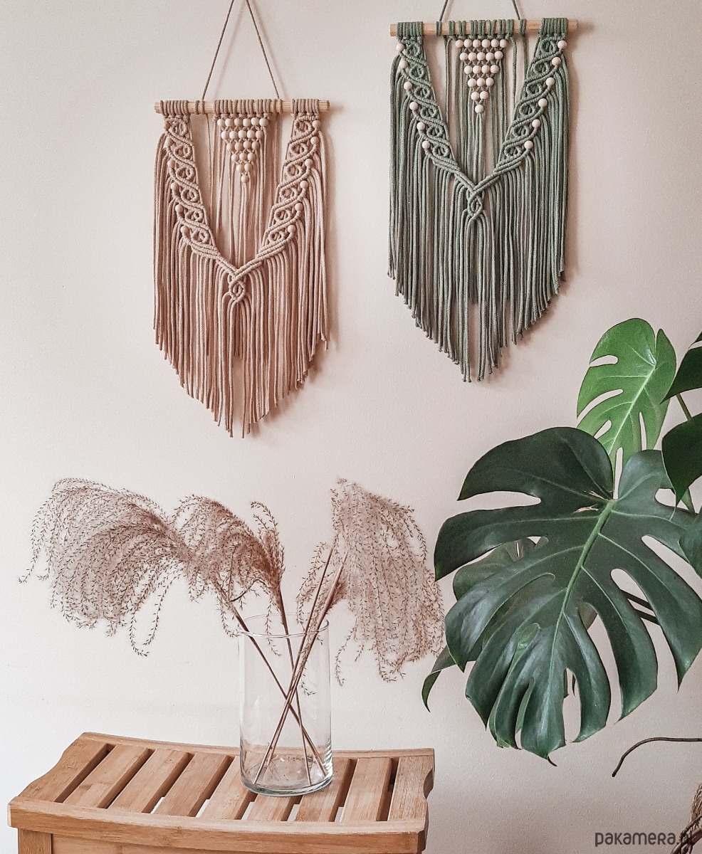 Ta delikatna,niewielka ścienna makrama w stylu boho wykonana ze sznurka bawełnianego w kolorze beżowym zdobiona drewnianymi koralami pięknie komponuje się z naturalnymi dodatkami i roślinami. Wprowadzi do Twojego mieszkania element w modnym stylu, ociepli klimat . Jeśli szukasz niebanalnego pomysłu na dekoracje ścienną - to właśnie znalazłeś produkt dla siebie. Makrama zawieszona jest na drewnianym kiju - profilu. Delikatny wzór wprowadzi do wnętrza odrobinę subtelności. Makrama świetnie współgra z drewnianymi meblami. Dodatkowo naturalny odcień beżu świetnie wpasowuje się w obecne trendy wnętrzarskie. Jeśli chcesz zamówić makramę w innym kolorze - w galerii produktu umieściłam kartę kolorów. Wystarczy wybrać interesujący Pana/Panią odcień i podać go w uwagach do zamówienia.