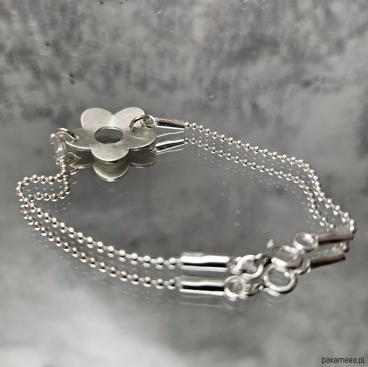 Delikatna srebrna bransoletka z kwiatem niezapominajką