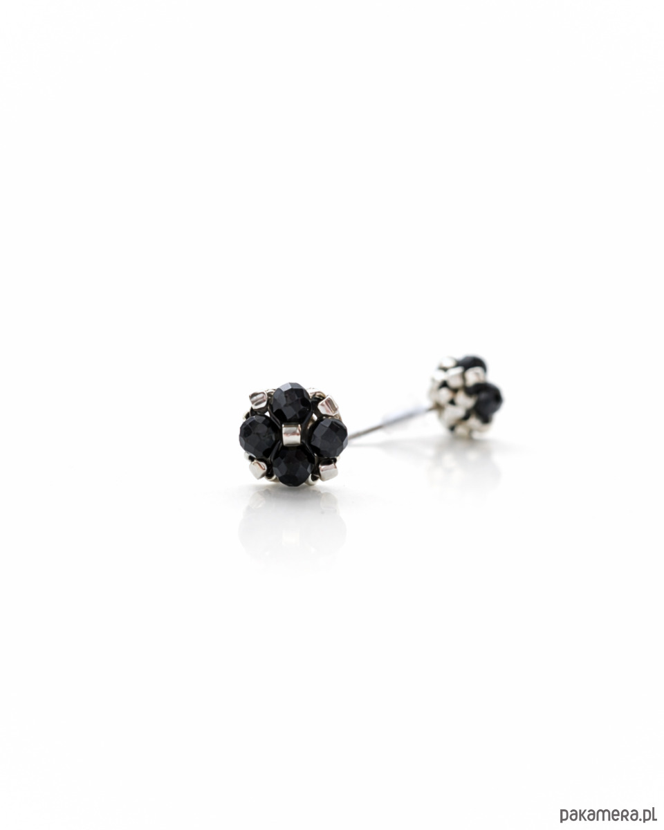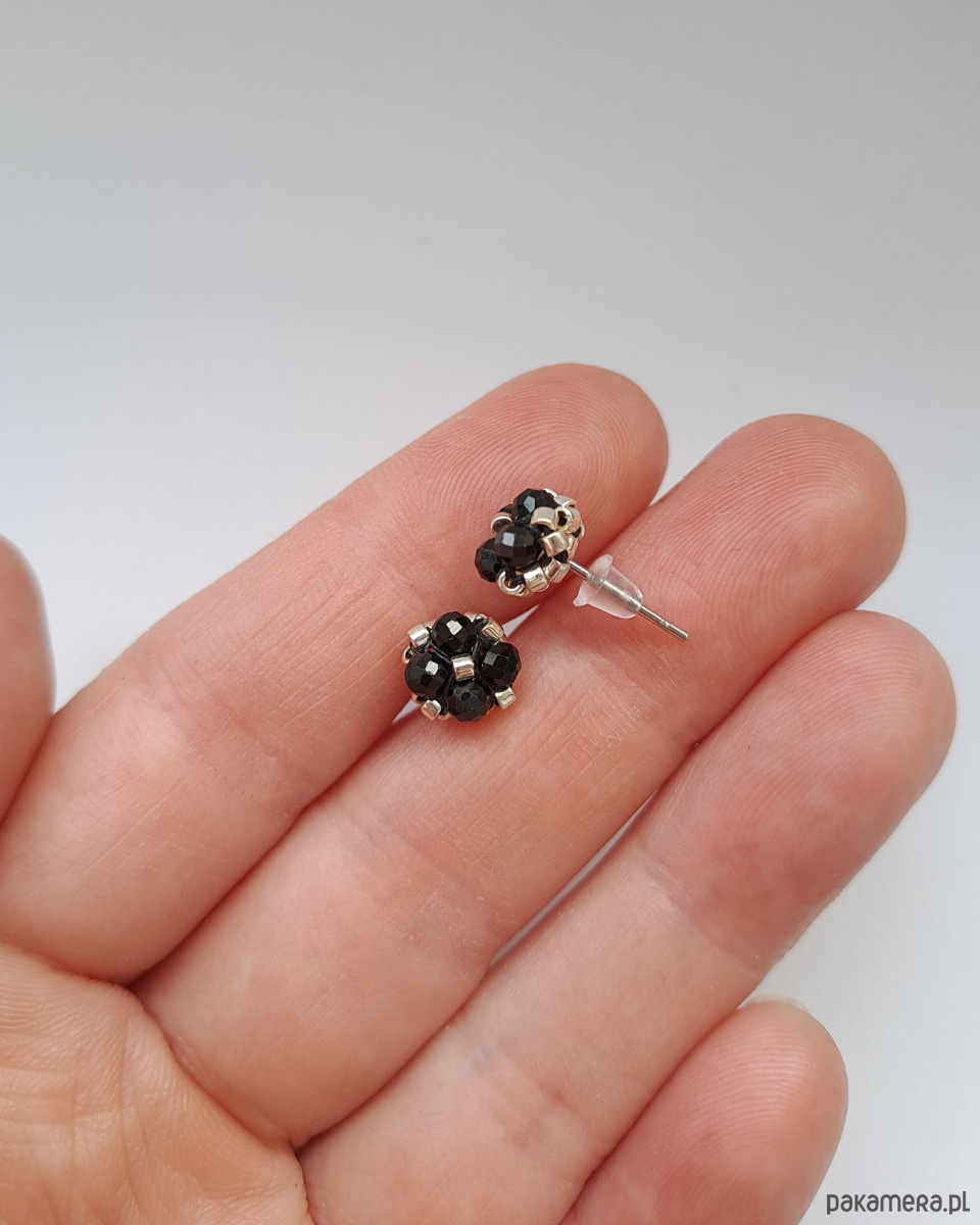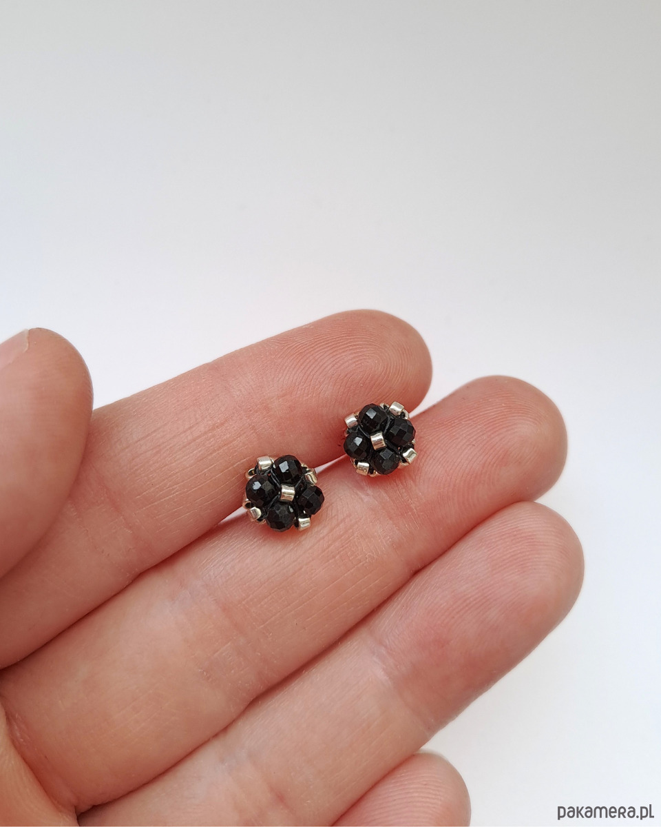 Delikatne Czarno-Srebrne Kolczyki Sztyfty - Turmalin