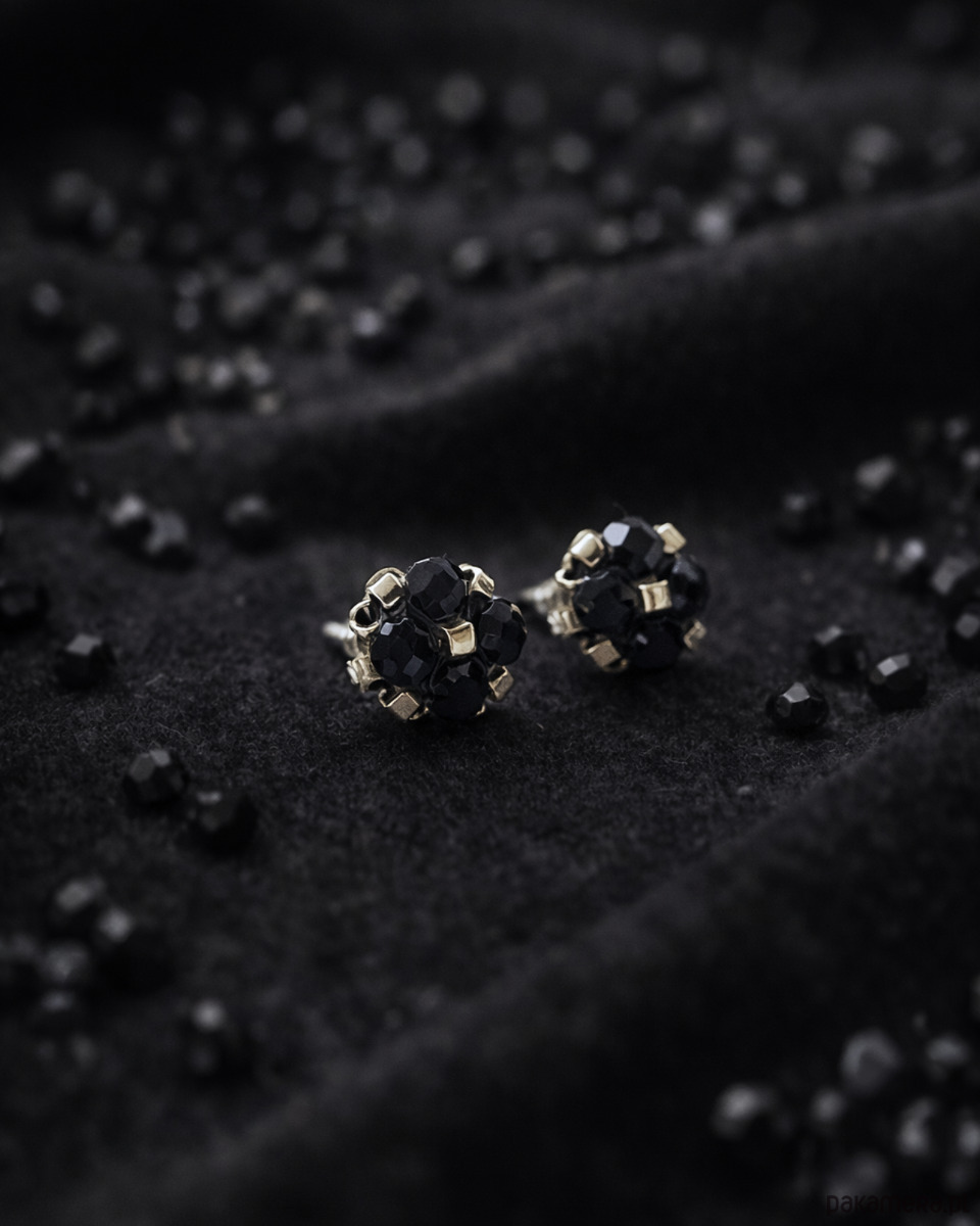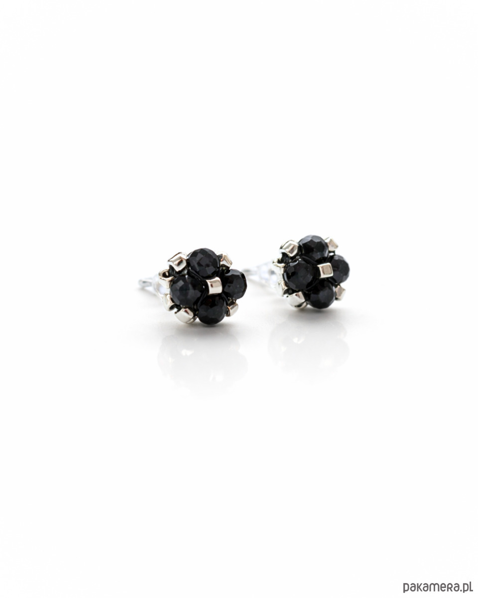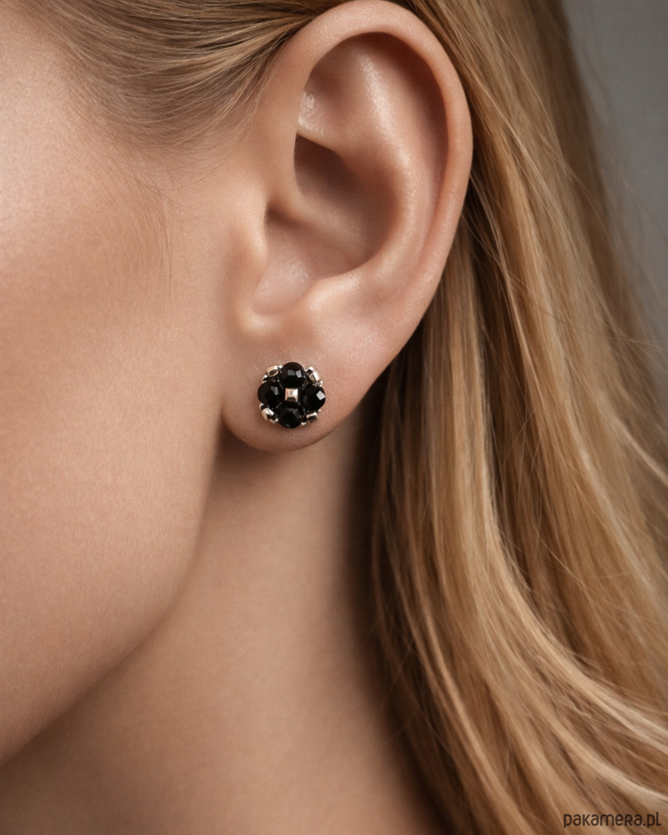 Delikatne Czarno-Srebrne Kolczyki Sztyfty - Turmalin