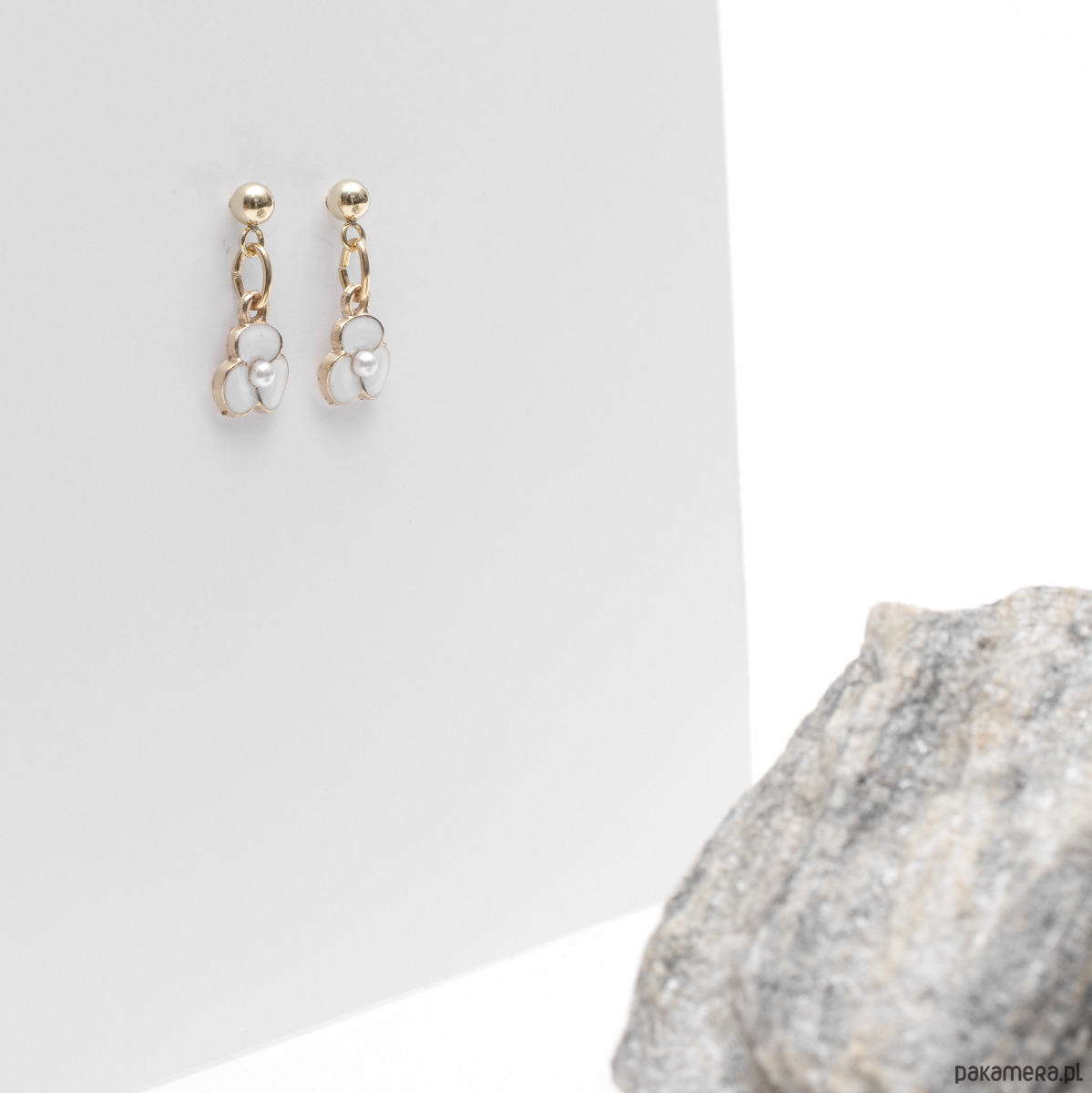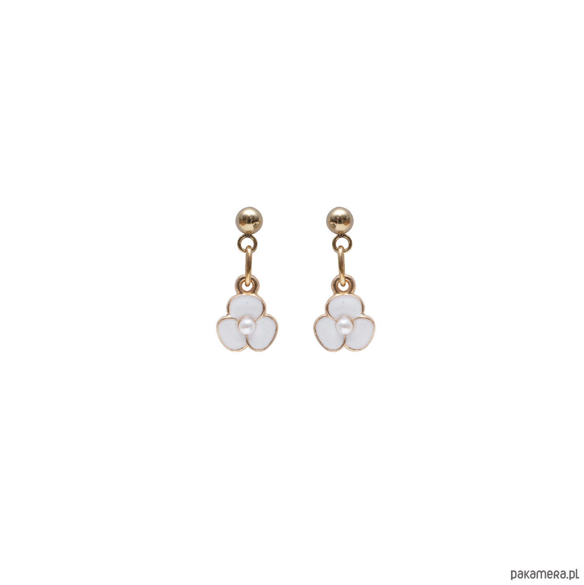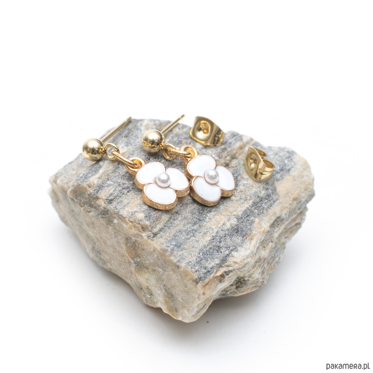Wybierasz trwałość i urok. Delikatny kształt kwiatu został wykonany z solidnego metalu, pokrytego trwałą, białą emalią i złoconym wykończeniem. W jego centrum lśni elegancka perła szklana. Zawieszone na bezpiecznych sztyftach ze stali z kuleczką, gwarantują hipoalergiczny komfort i długotrwałą odporność na matowienie. To rzetelny zakup trwałej biżuterii, która jest urocza i bezpieczna dla skóry.
