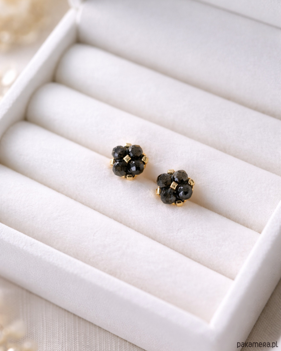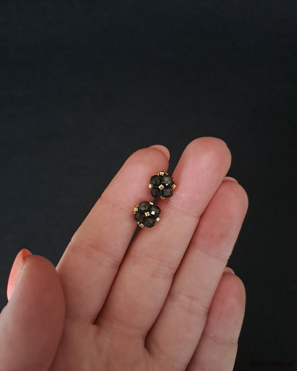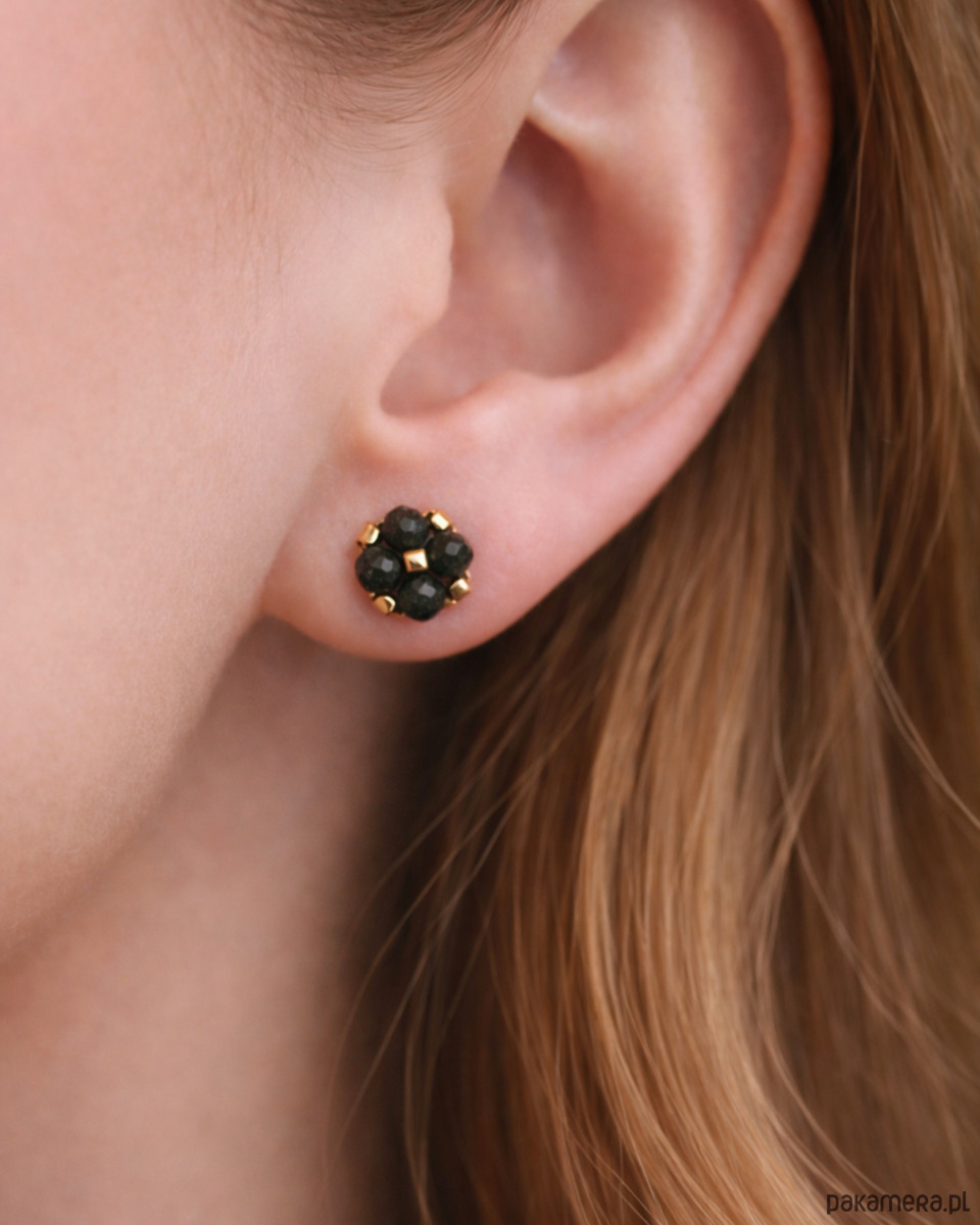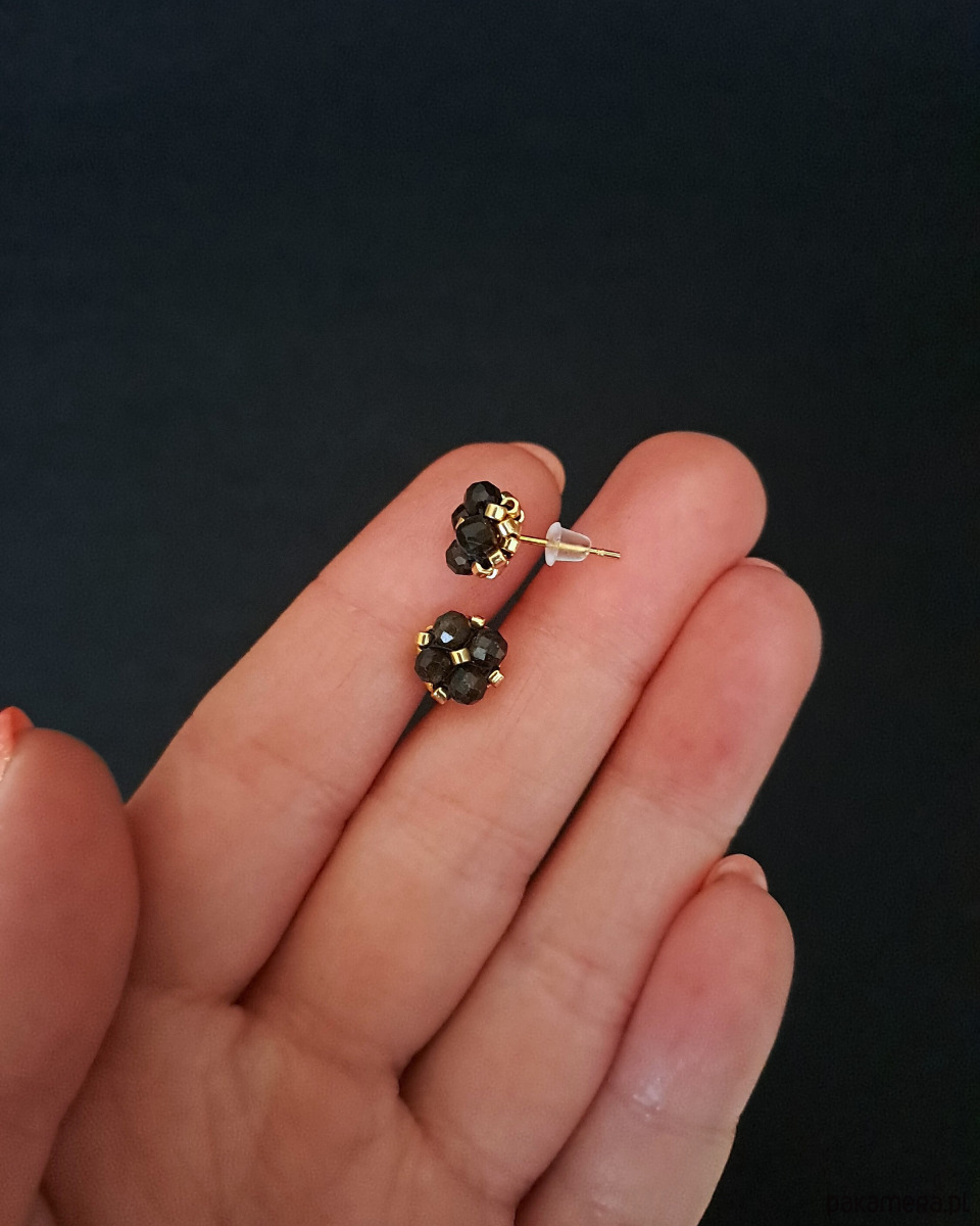 Sztyfty z obsydianu złocistego zachwycają głęboką czernią z subtelnym, złotym połyskiem widocznym w świetle. W połączeniu ze złotymi detalami tworzą elegancką, wyrazistą kompozycję o ponadczasowym charakterze. Minimalistyczna forma i niewielki rozmiar sprawiają, że są wygodne w noszeniu, a jednocześnie przyciągają spojrzenia swoją tajemniczą głębią.