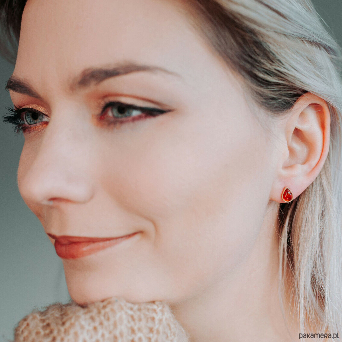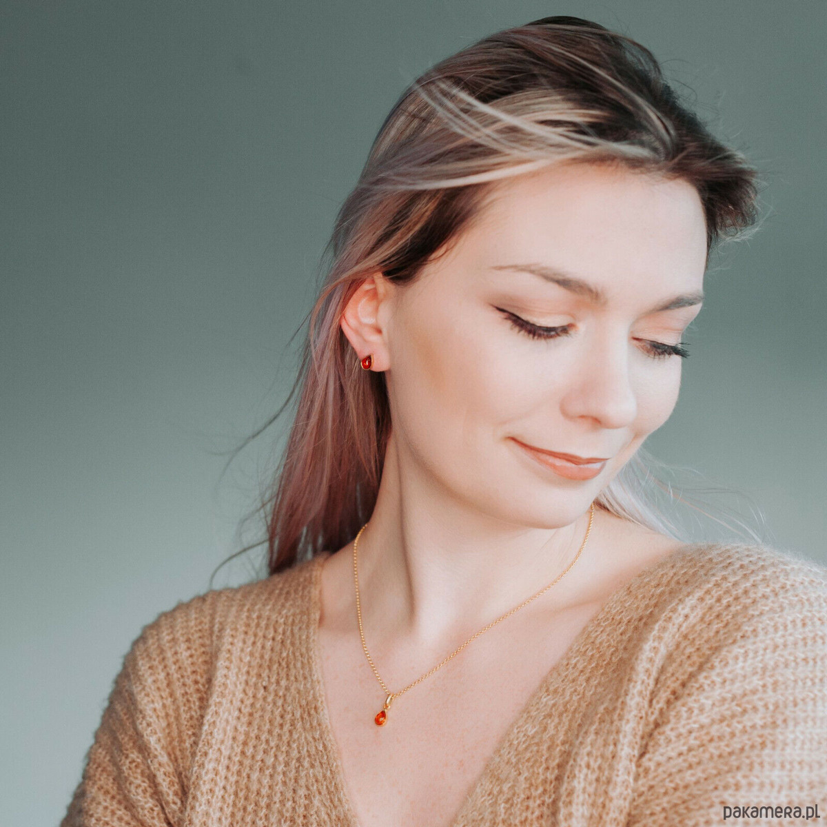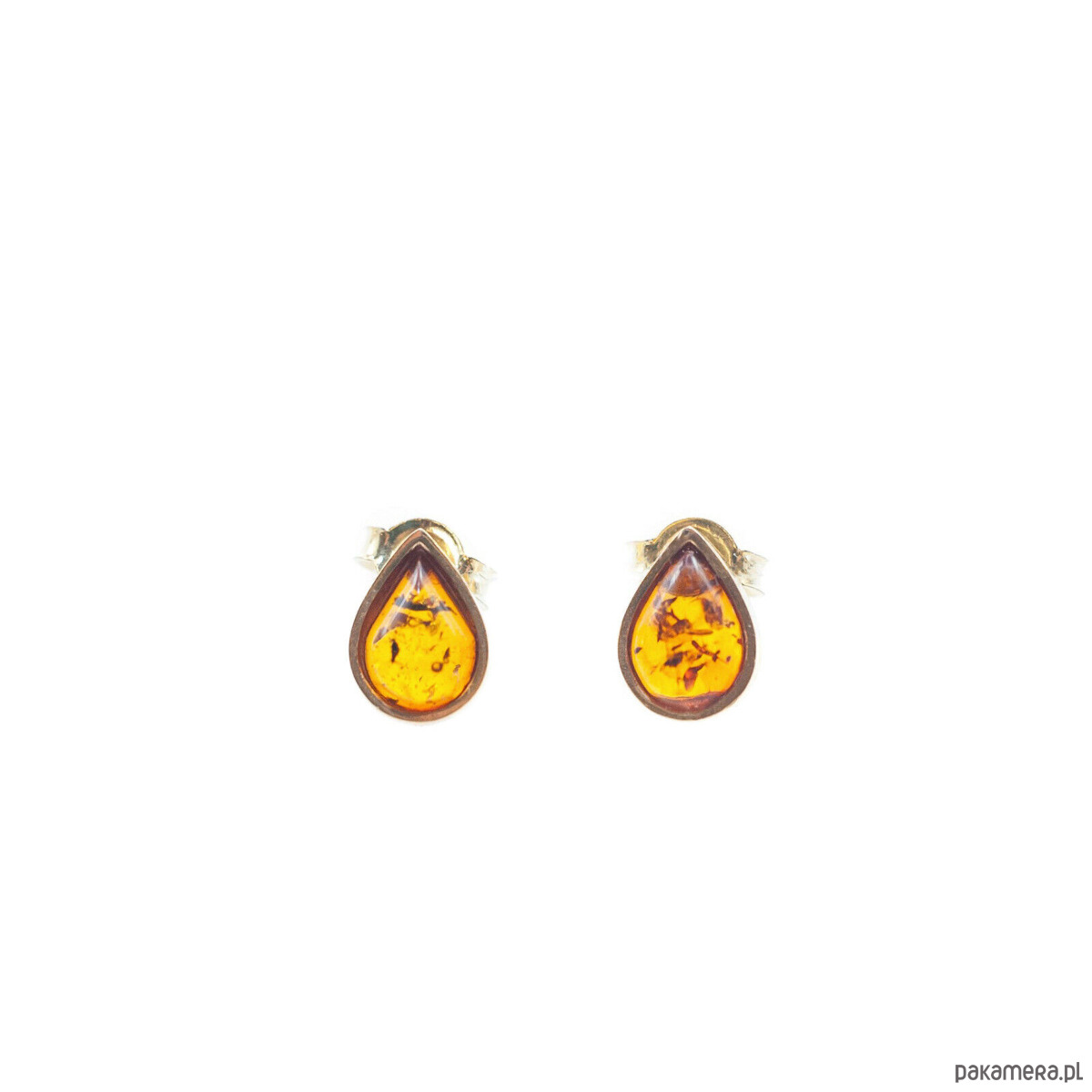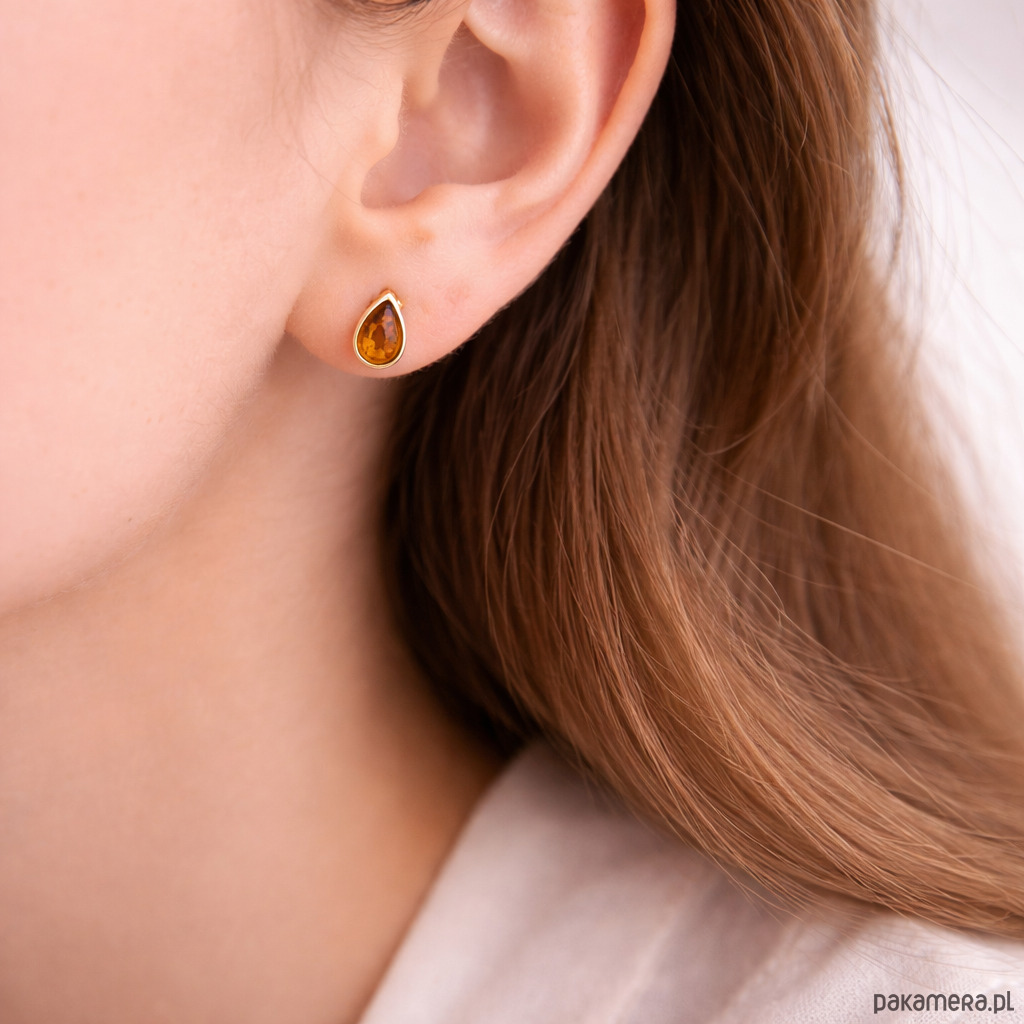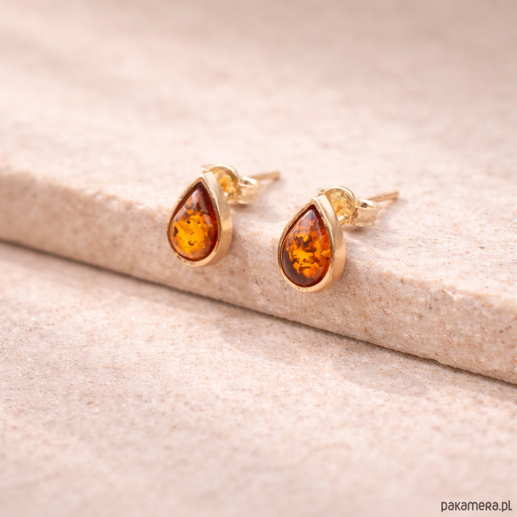 Delikatne kolczyki z bursztynem 925 złocone Łezki sztyfty bursztynowe