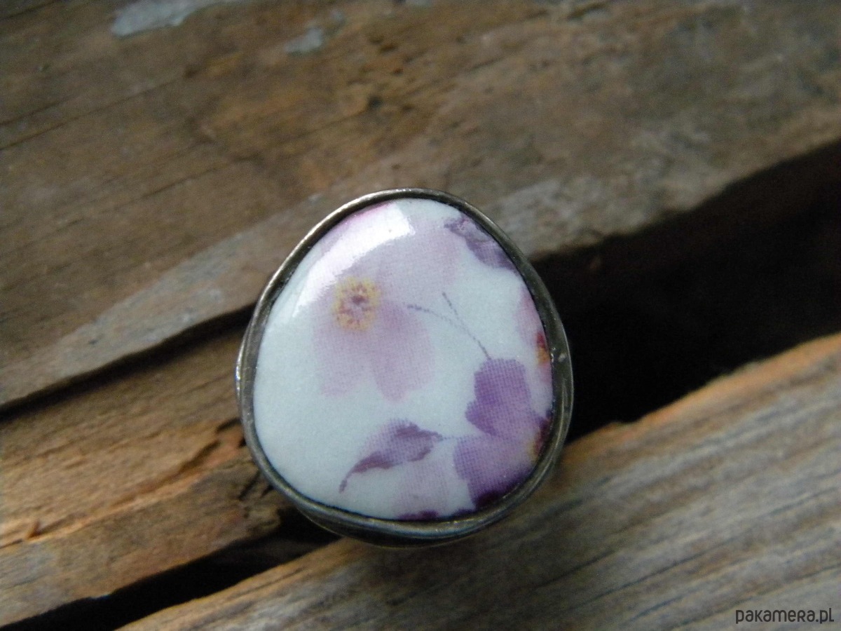 Pierścionek. Ceramika w ocynowanej miedzi.