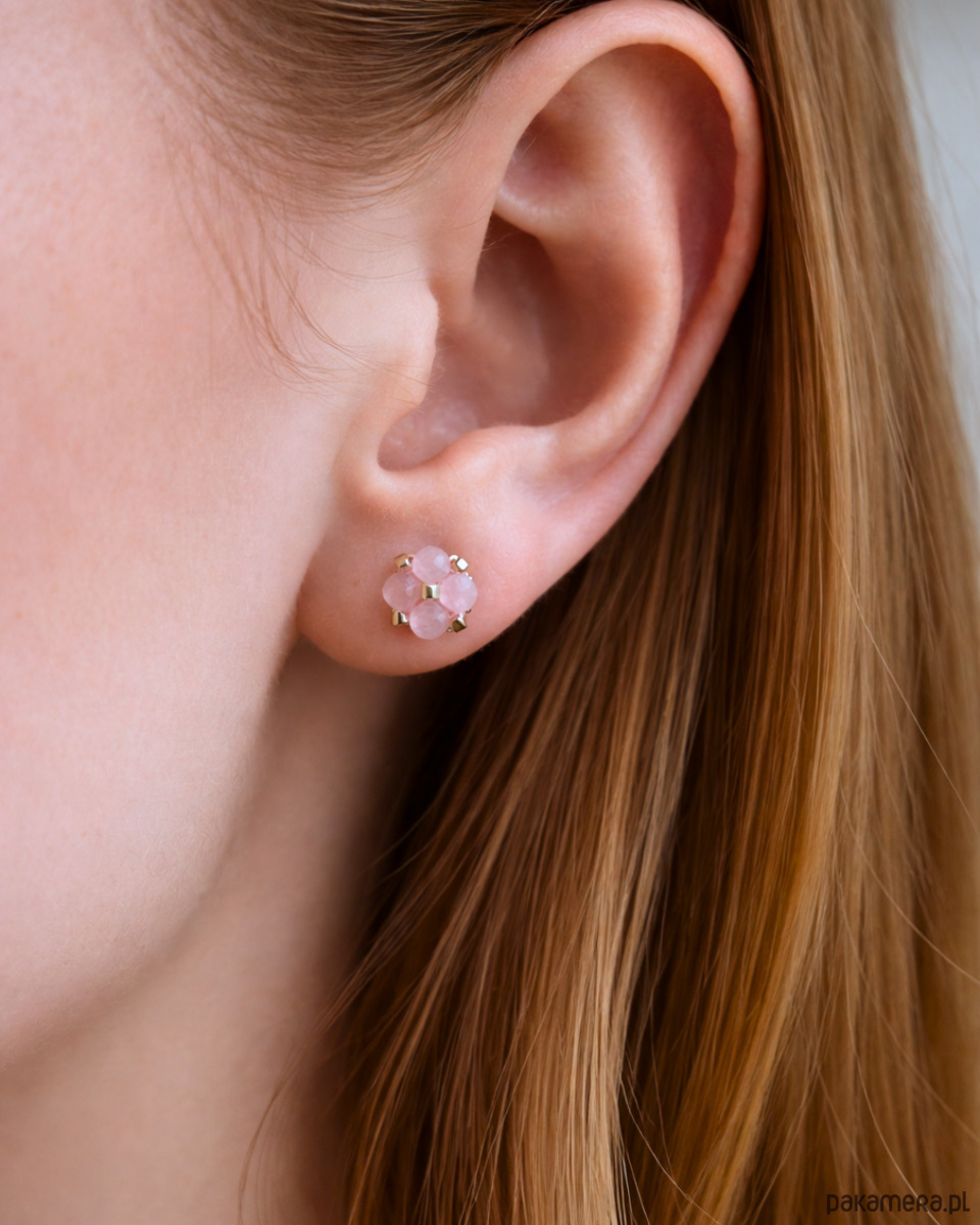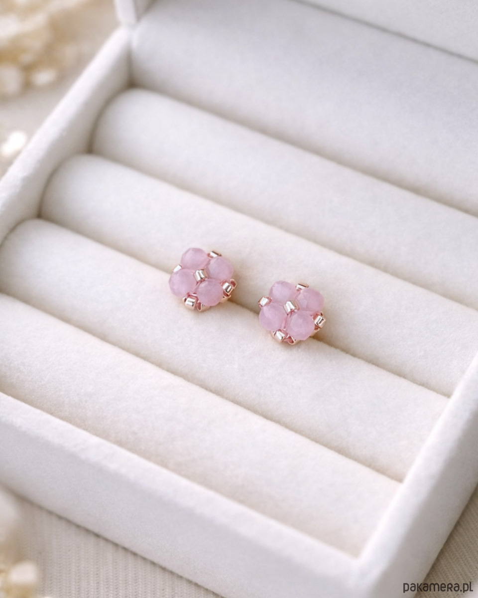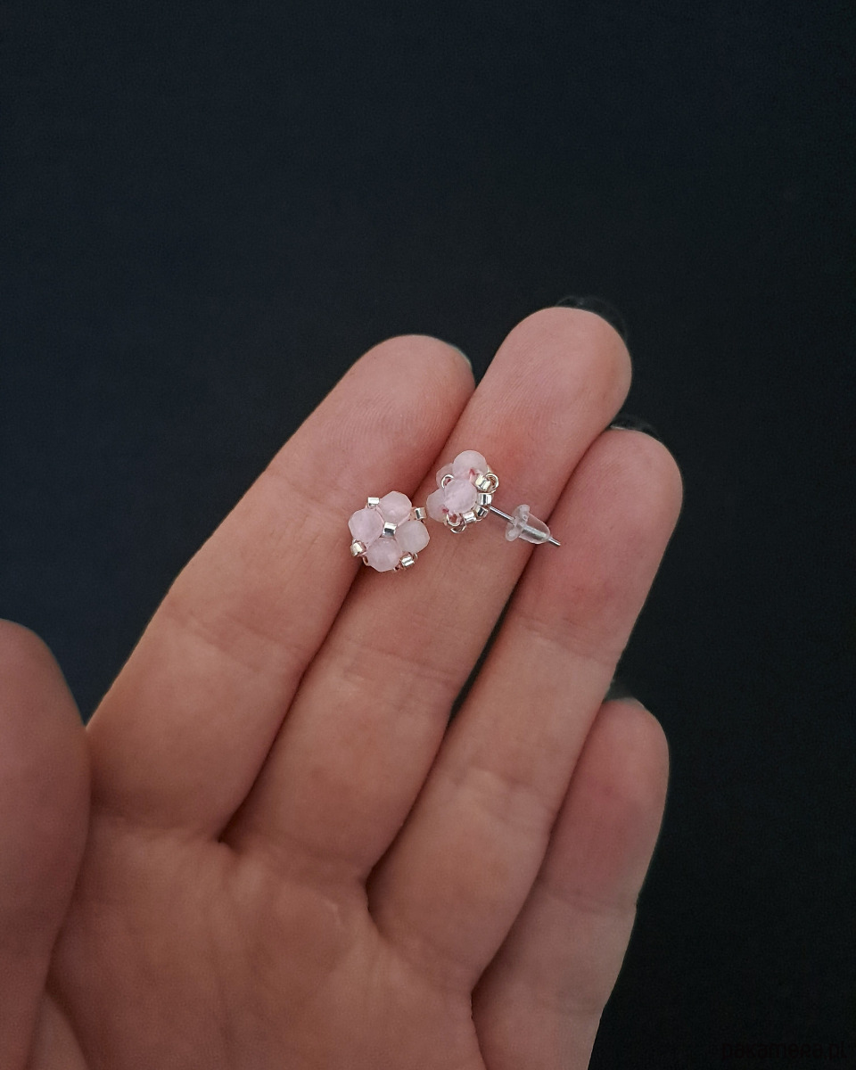 Delikatne Różowe Kolczyki Sztyfty - Kwarc Różowy