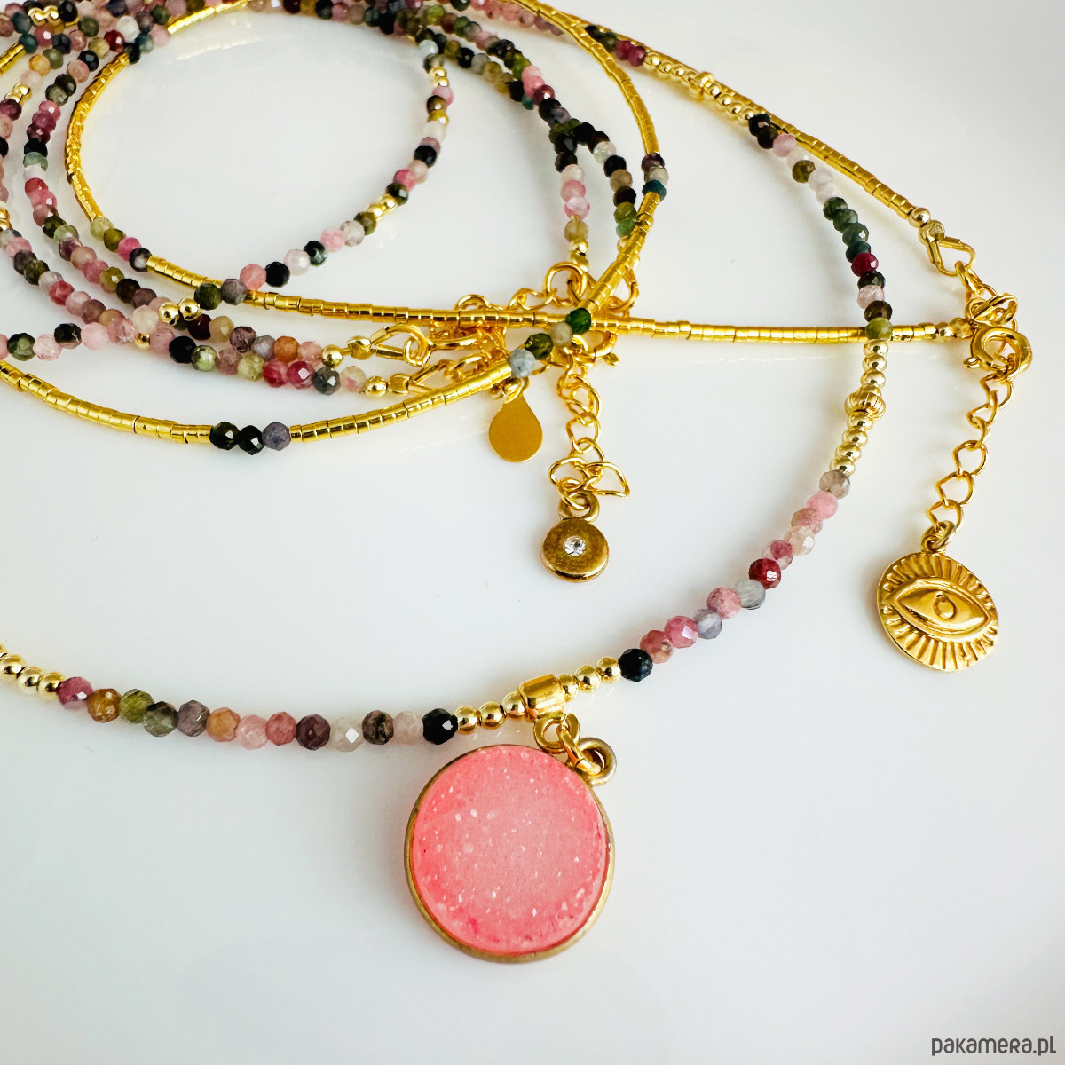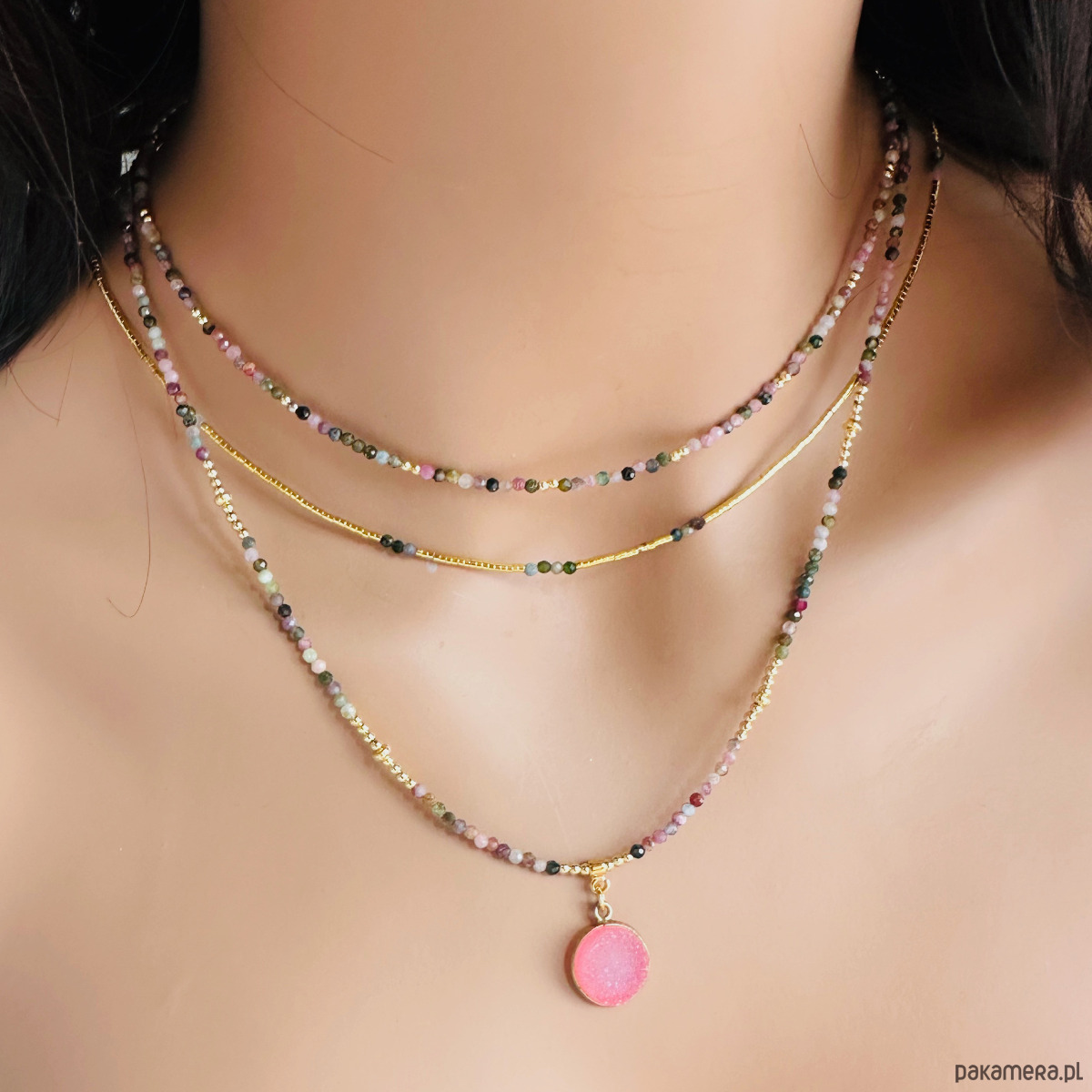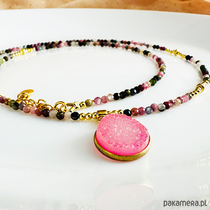 Delikatny komplet NASZYJNIKÓW Turmalin, kolorowe kamienie