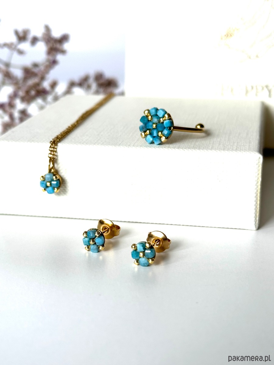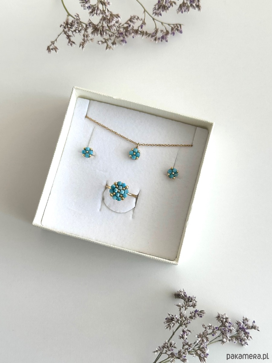 Subtelny, elegancki komplet biżuterii w odcieniu pięknego intensywnego turkusu.