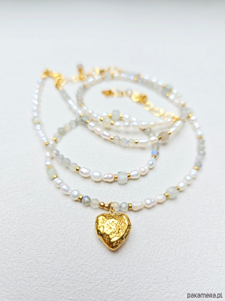 Wykorzystane kamienie to: labradoryt, kamień księżycowy, perły naturalne .