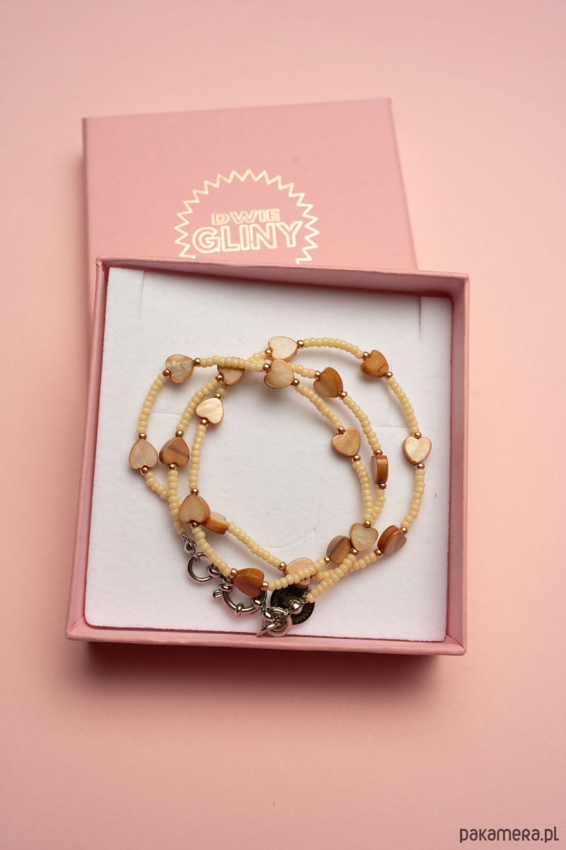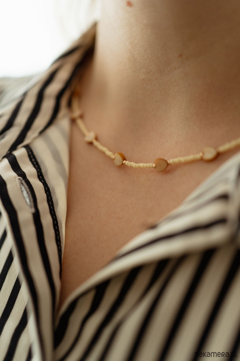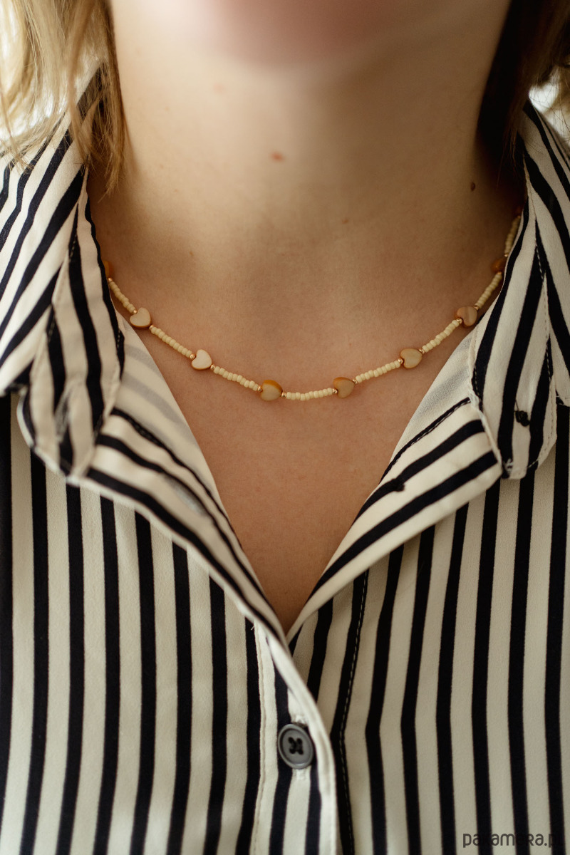 Naszyjnik z serduszek i drobnymi koralikami to delikatna ozdoba, która doda blasku każdemu dniu – od porannej kawy po wieczorne wyjście.