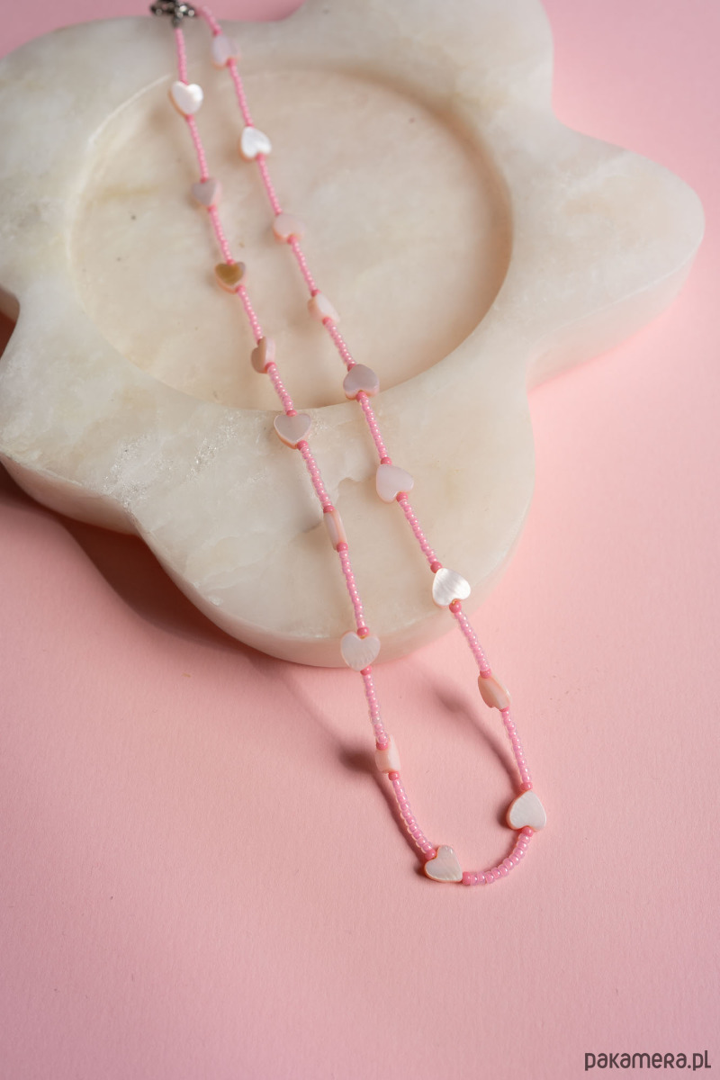Naszyjnik serduszkami i drobnymi, szklanymi koralikami to doskonały wybór dla miłośniczek delikatnych, ręcznie tworzonych dodatków. Idealny do noszenia na co dzień lub kiedy masz na to ochotę! Jedyny w swoim rodzaju, ręcznie robiony! Jest łatwy w zapinaniu i unikatowy.