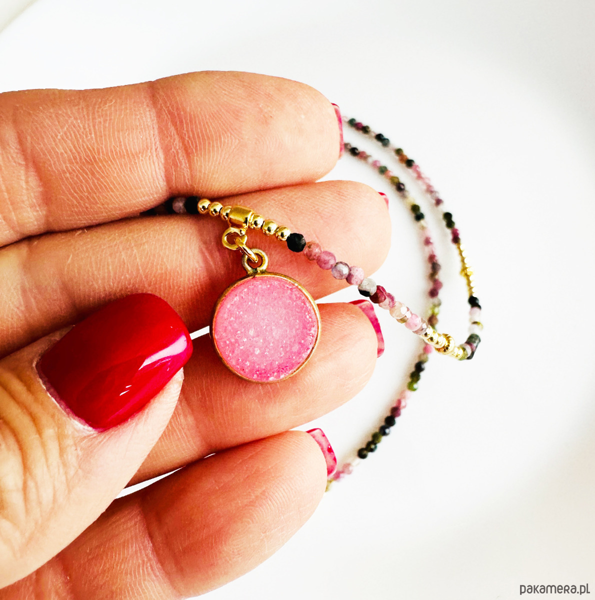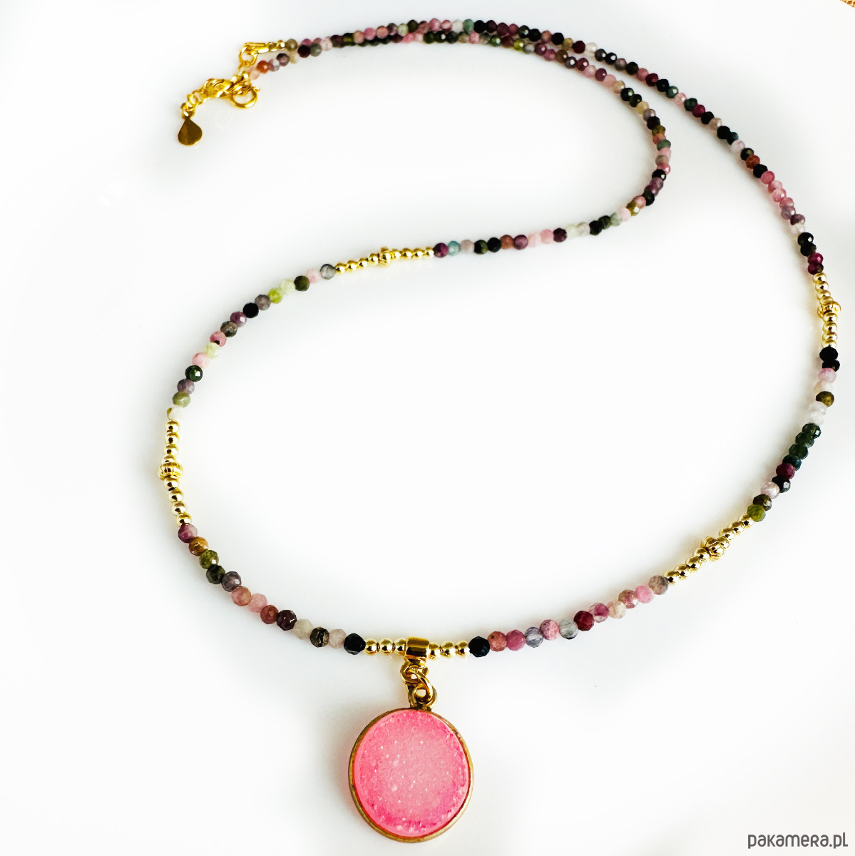 Delikatny NASZYJNIK Turmalin, kolorowe kamienie