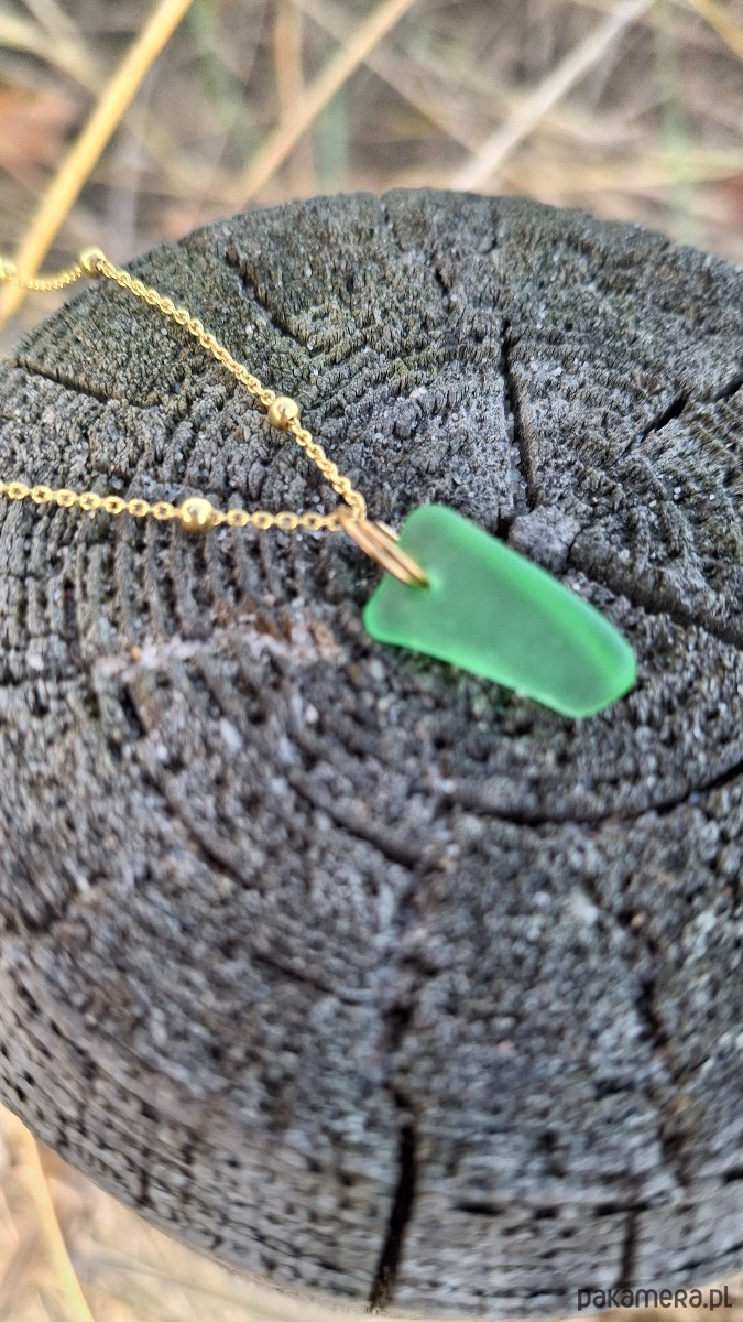 Delikatny naszyjnik z prawdziwym szkłem morskim